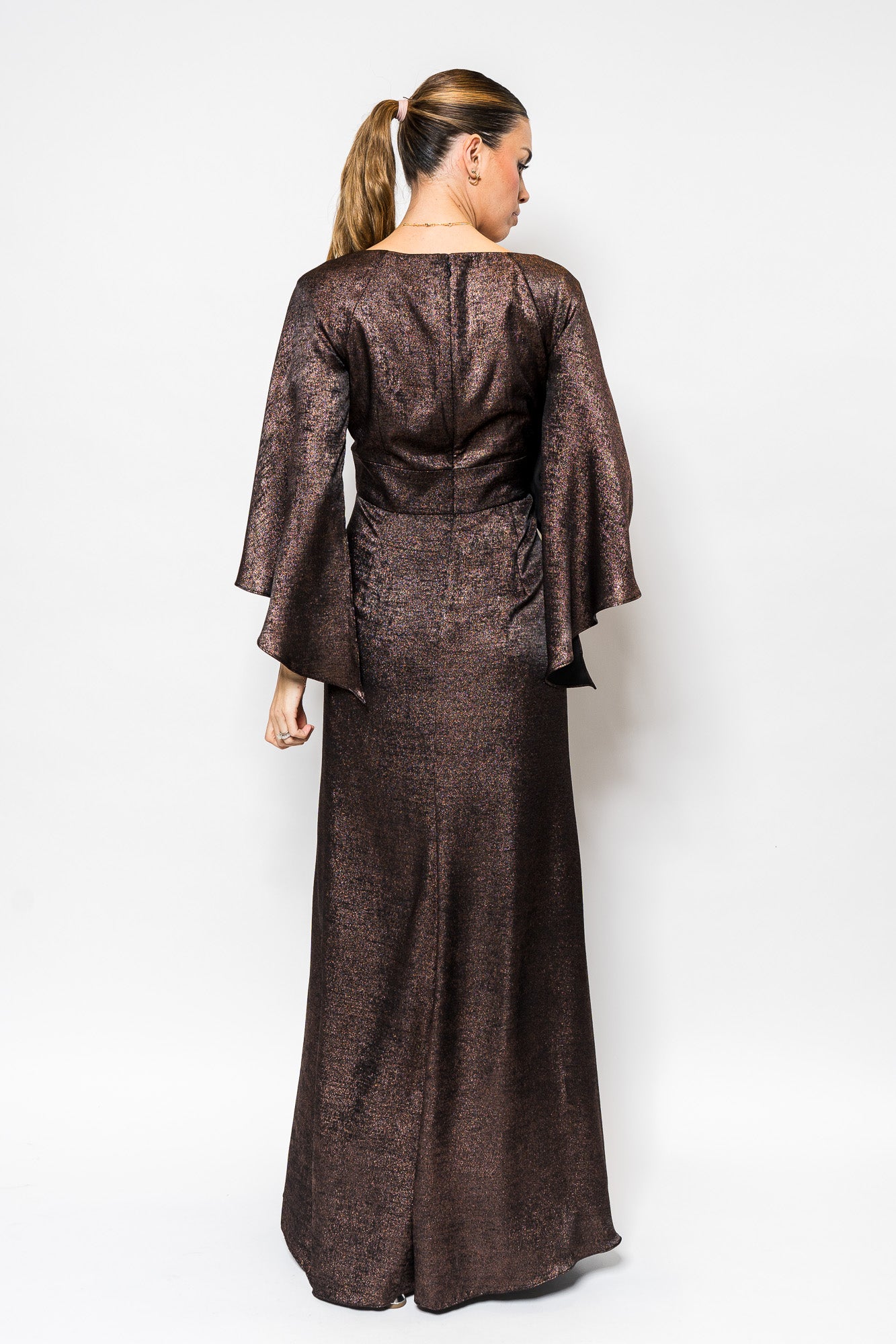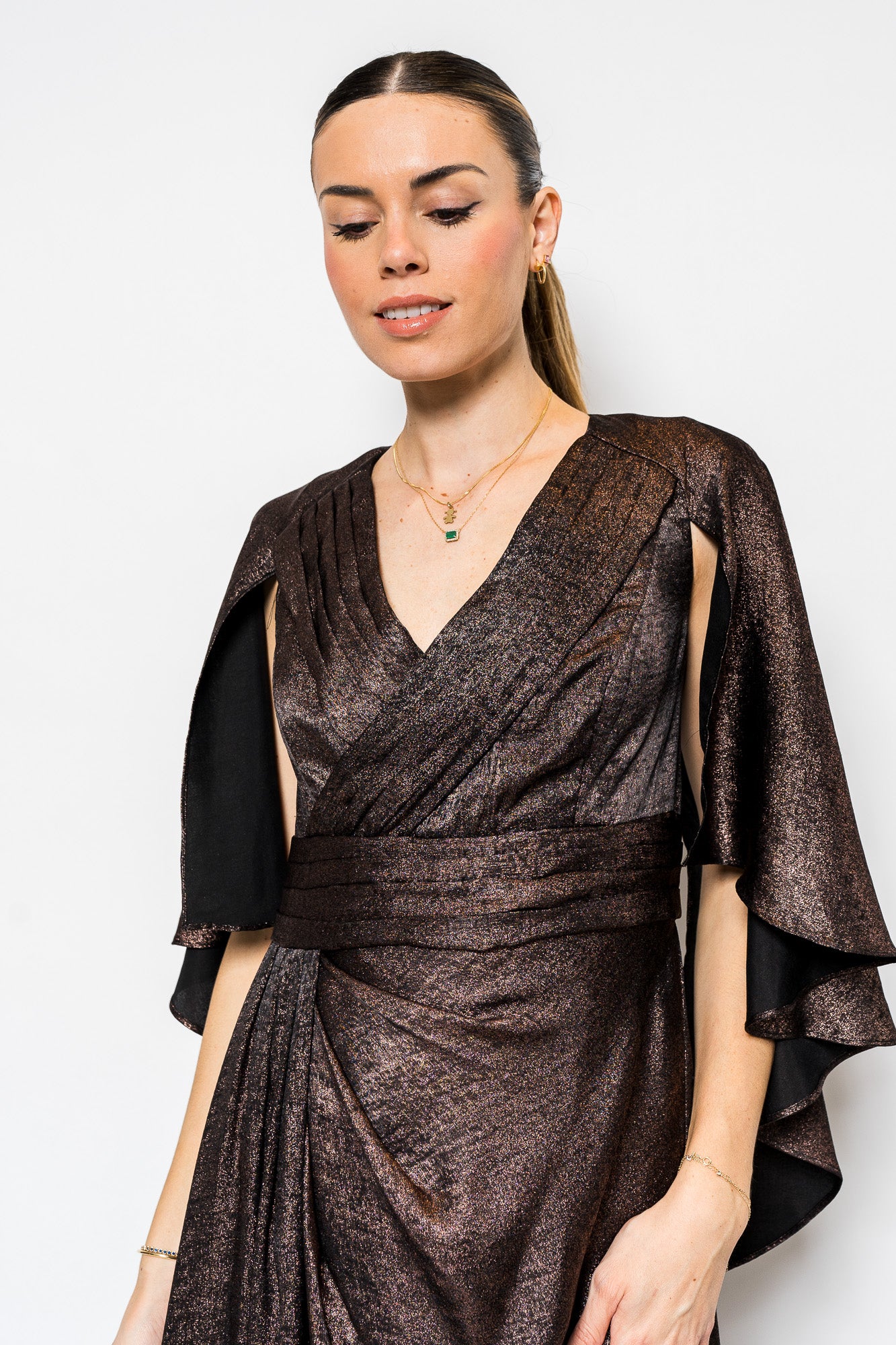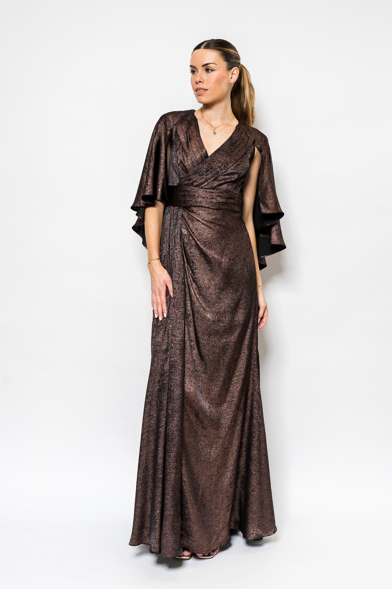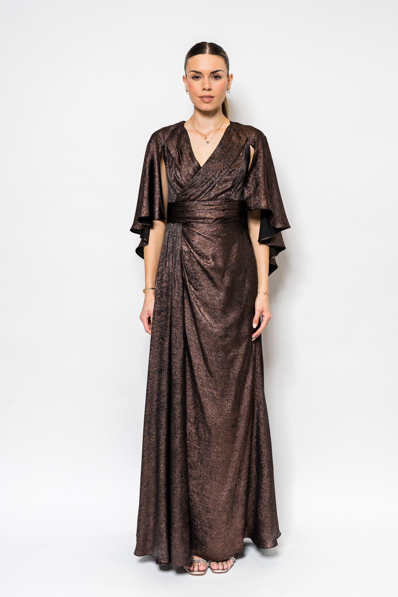 Nadine Asymmetric Gown in Rose Gold by Theia.