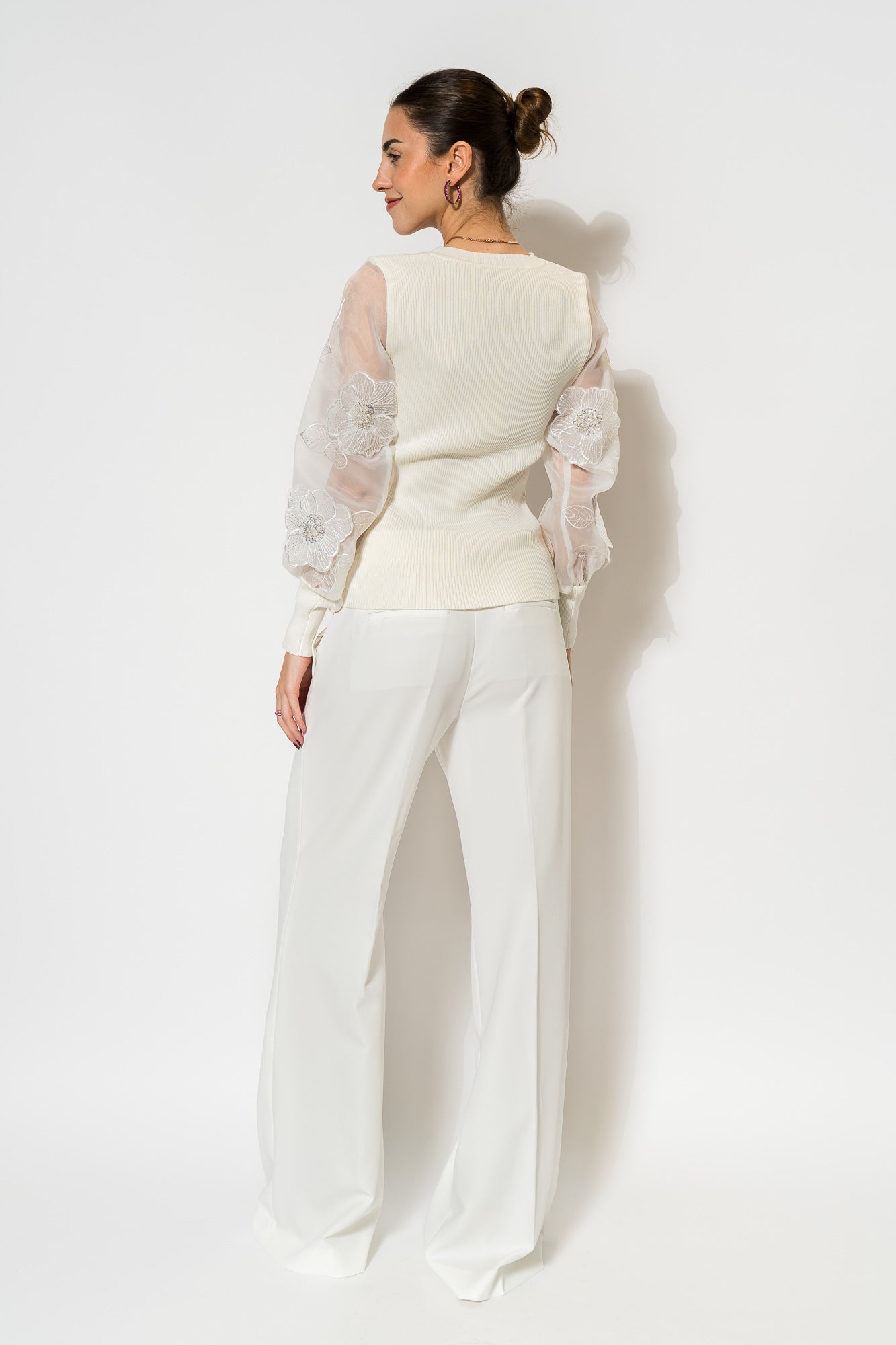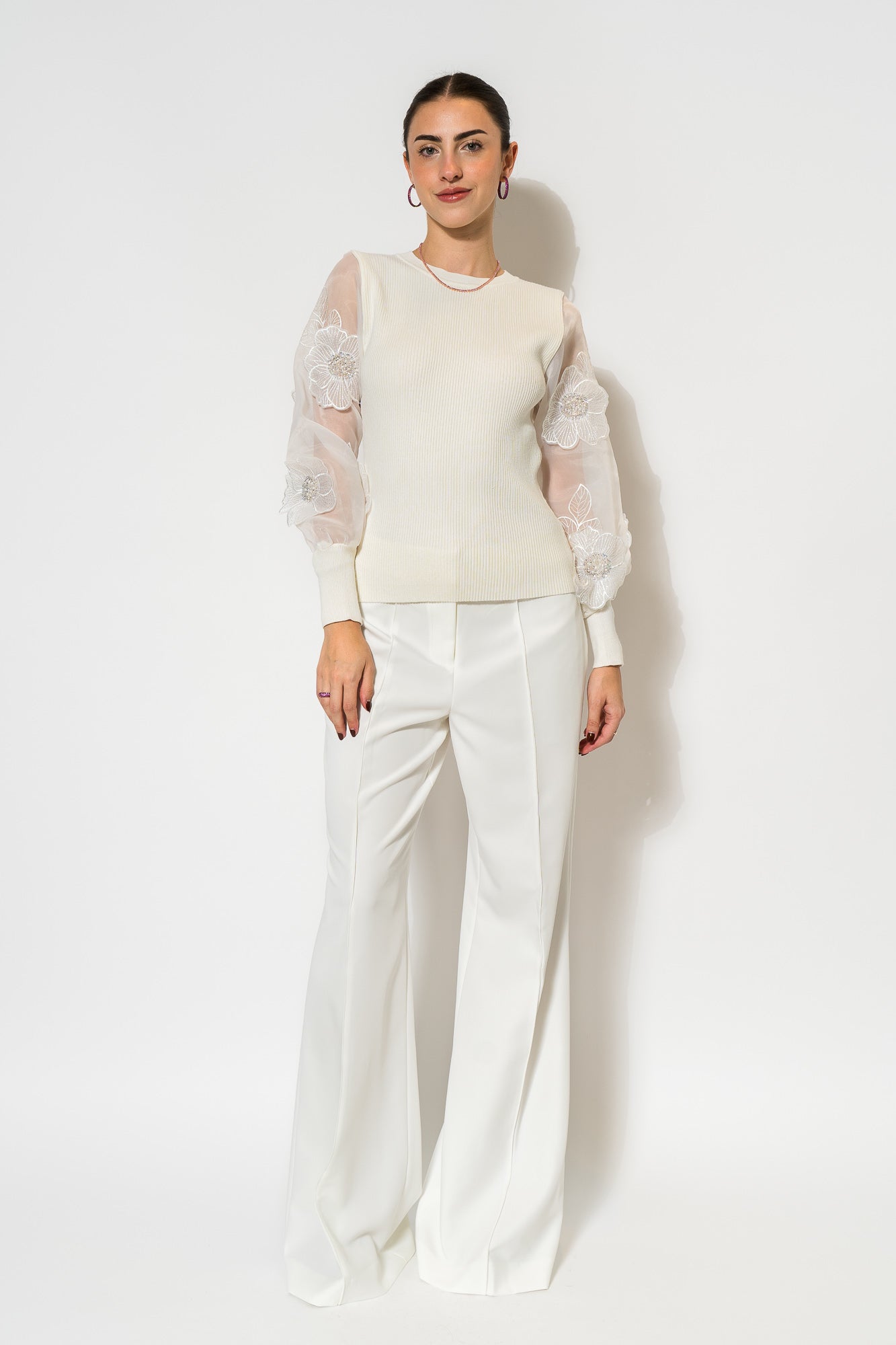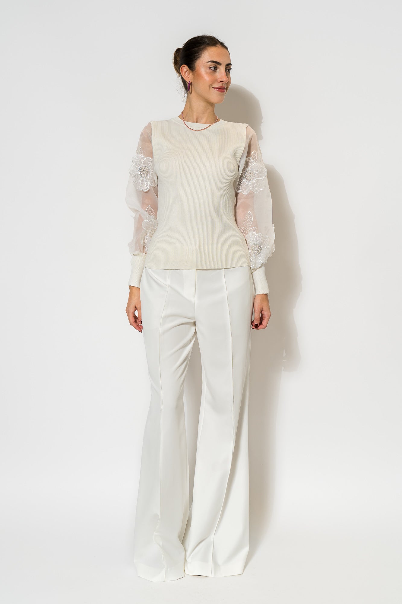 Koda Combo Slleve Knit Pullover & Nash Cady Pants in Ecru by Milly.