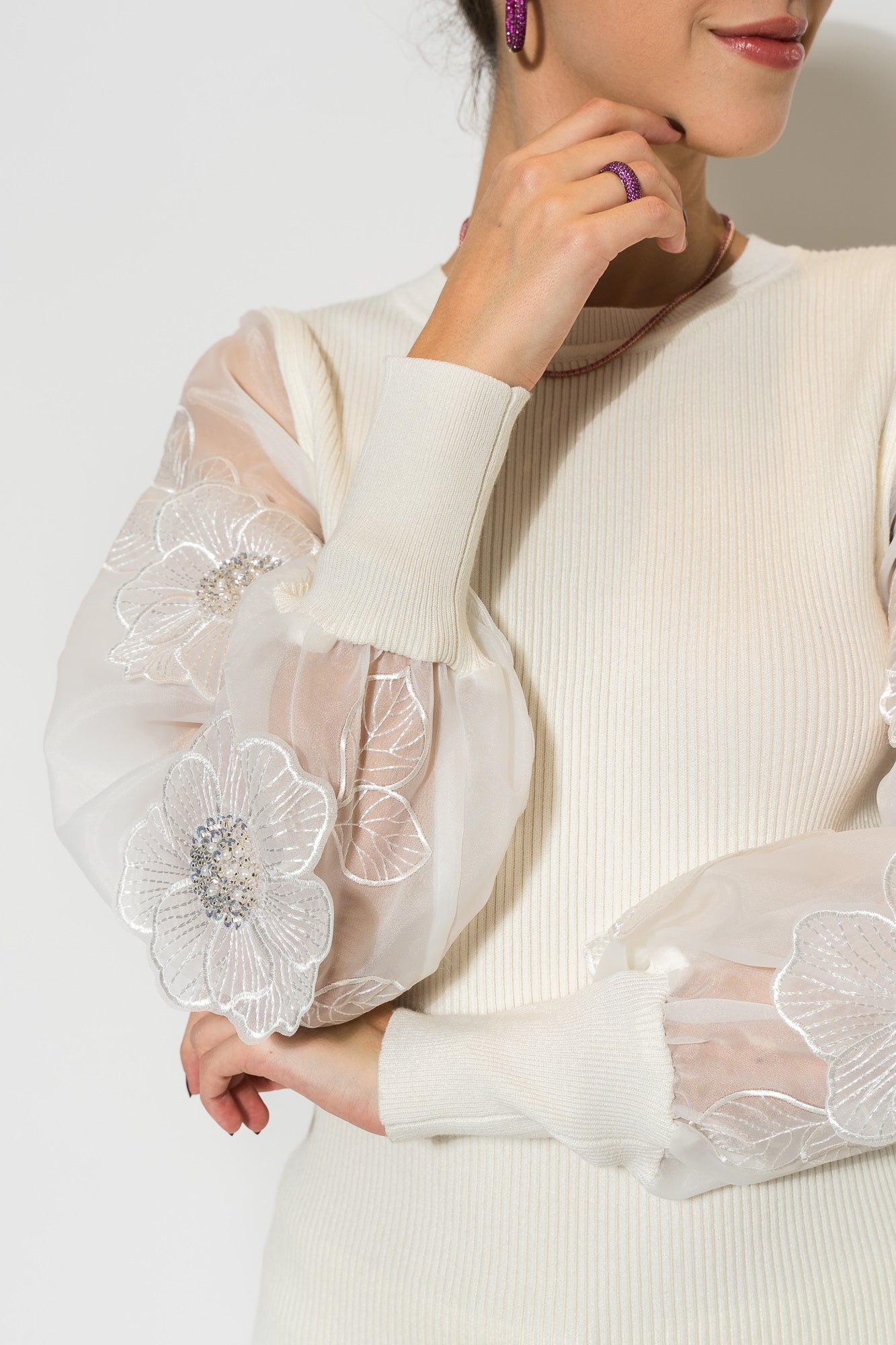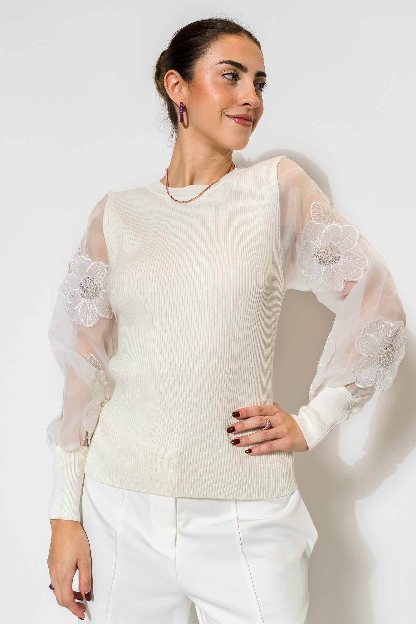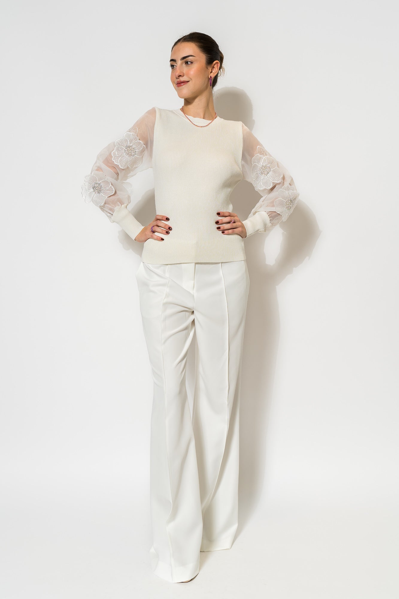 Koda Combo Slleve Knit Pullover & Nash Cady Pants in Ecru by Milly.