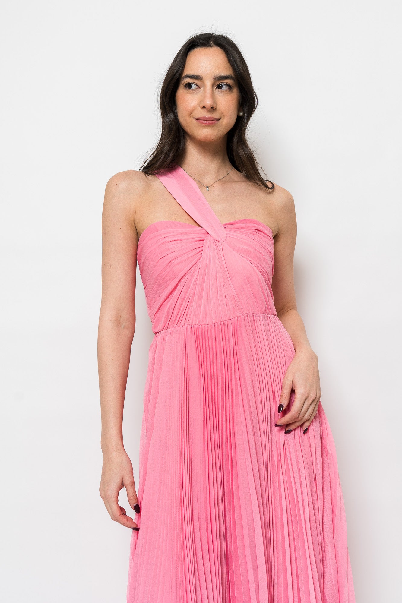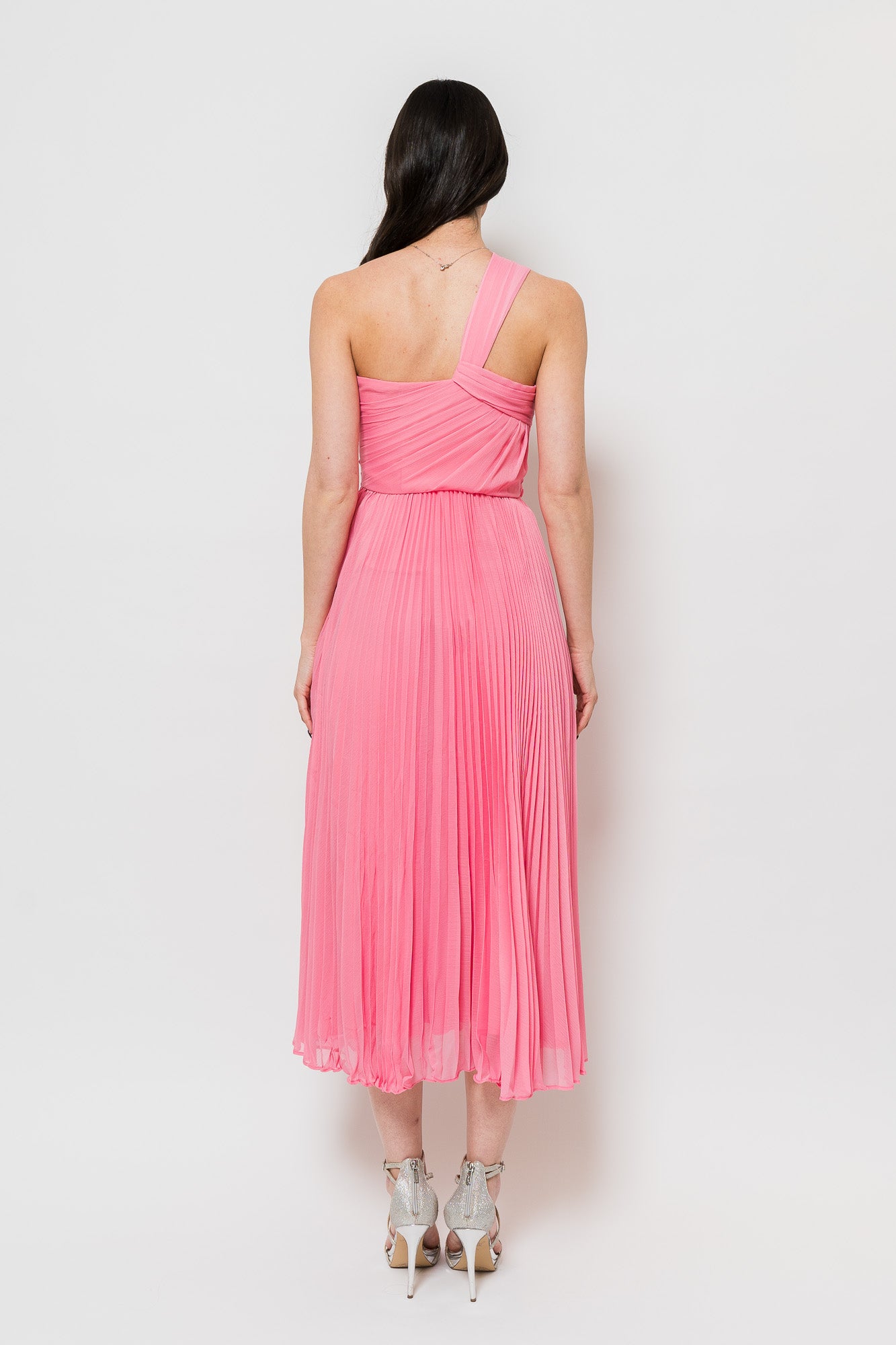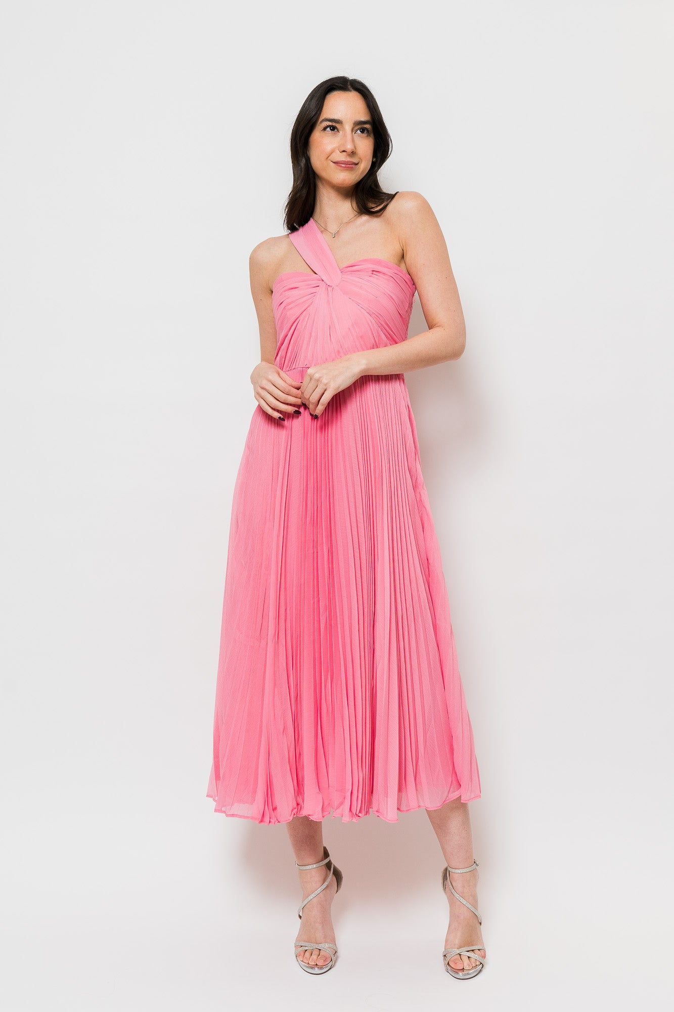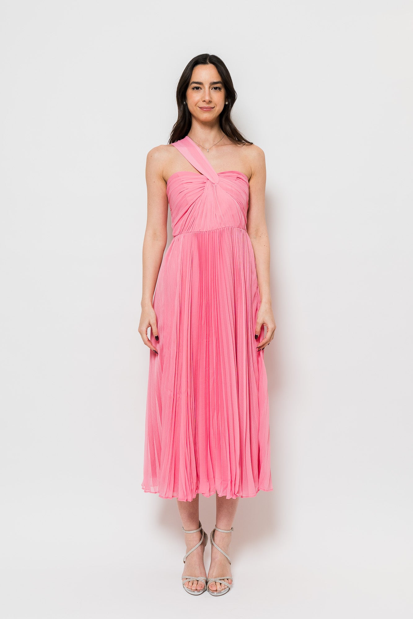 Lindsay Chiffon Midi Dress in Candy Pink by ML Monique Lhuillier.