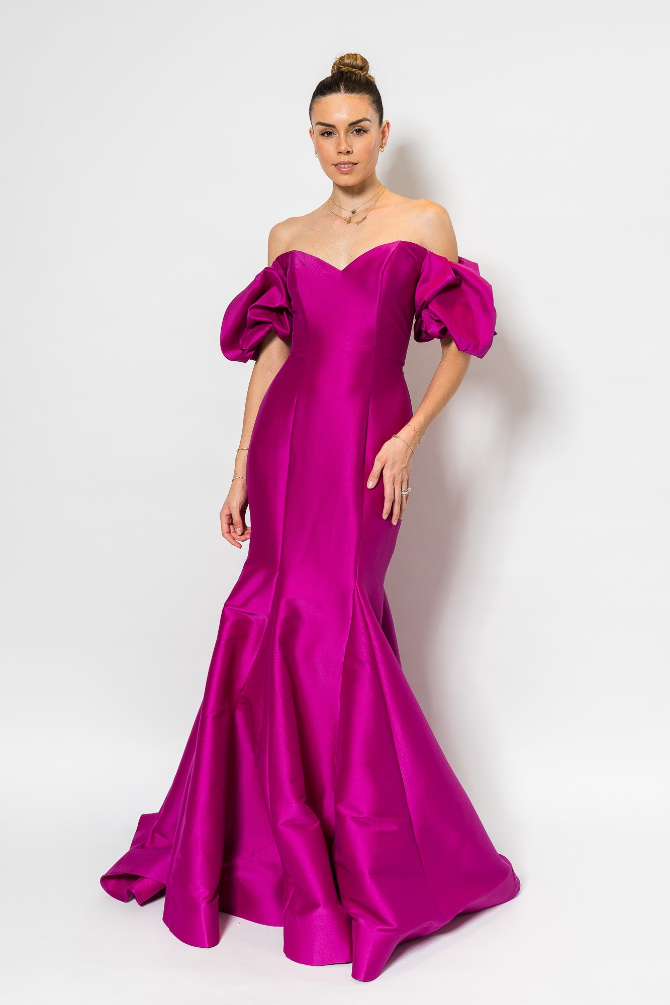 Off the Shoulder Sweetheart Neck Dress in Orchid by Jovani.