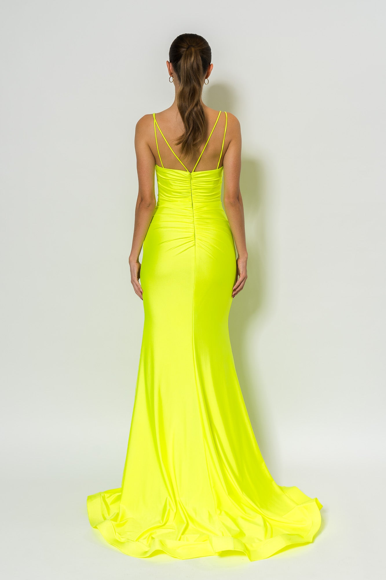 Stretch Satin in Lime by JVN, Jovani.