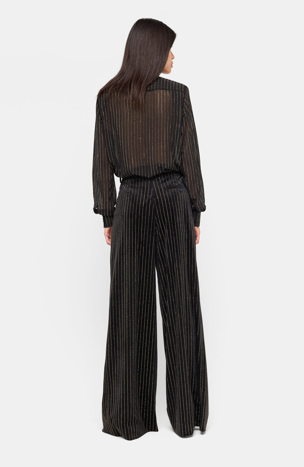 Lune Blouse & Daya Pant in Black with Topaz Crystals by Ronny Kobo.
