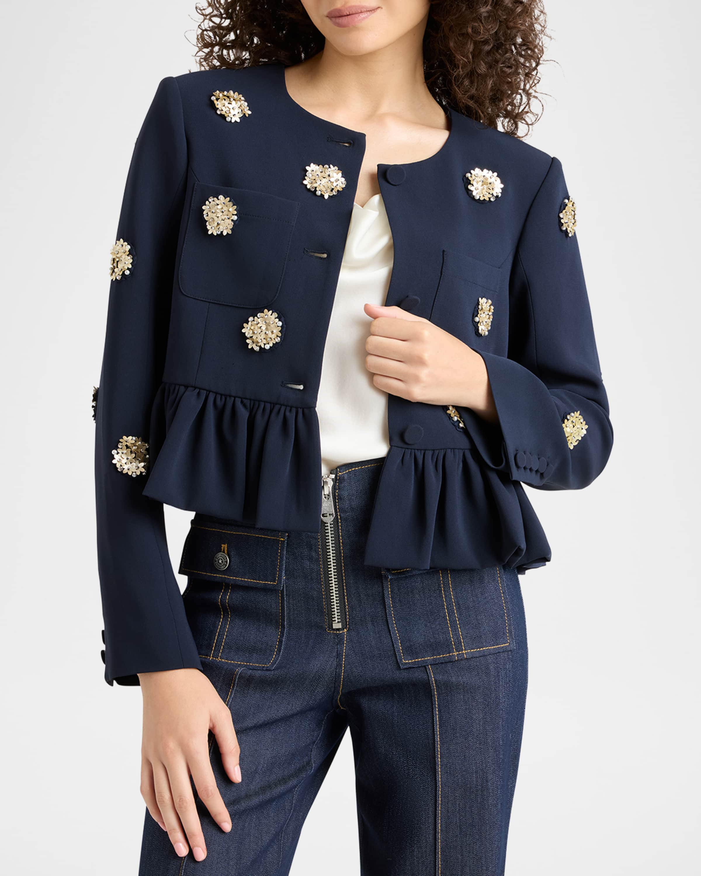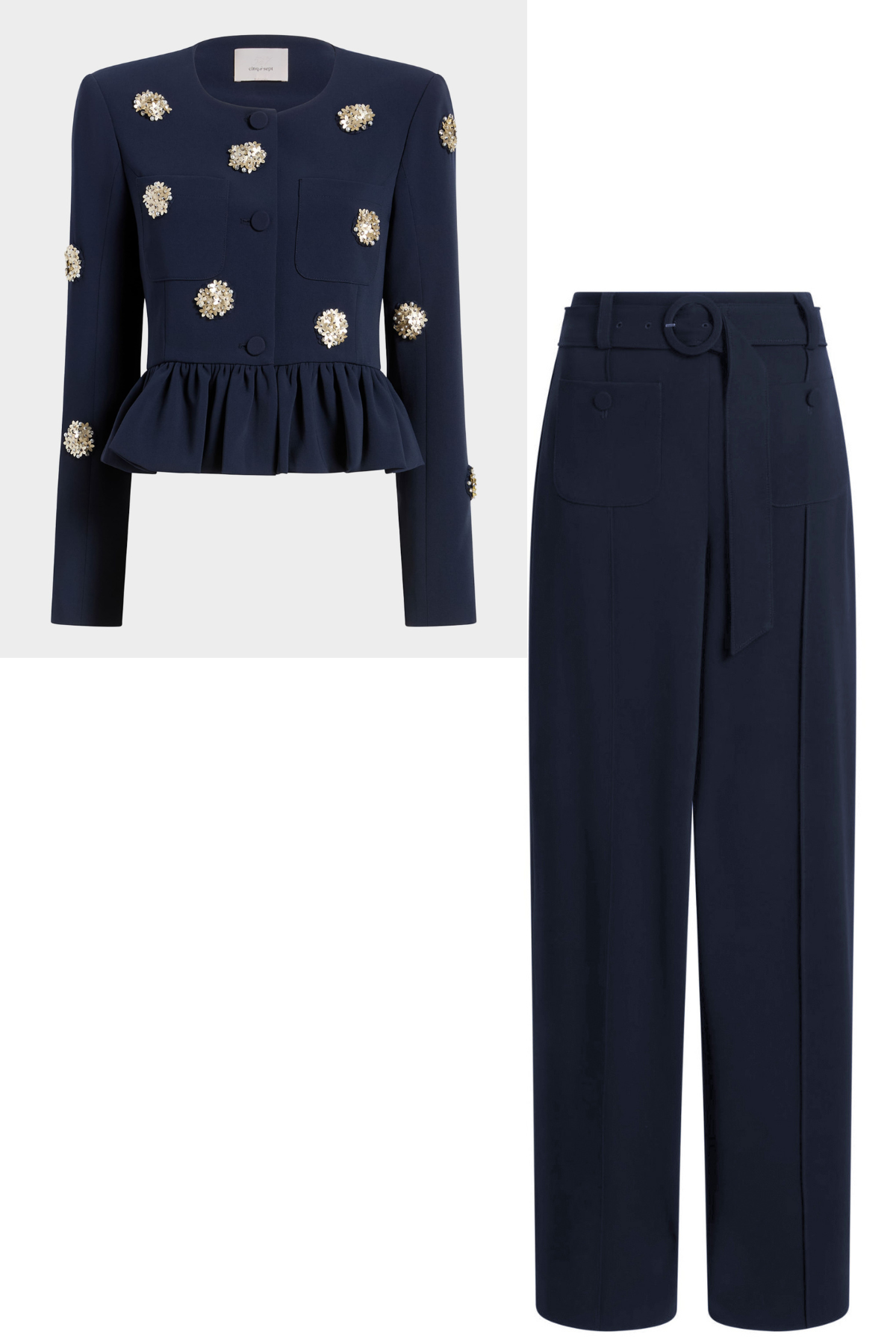 Flower Dots Zellie Jacket and Renea Pant in Navy by Cinq a Sept.