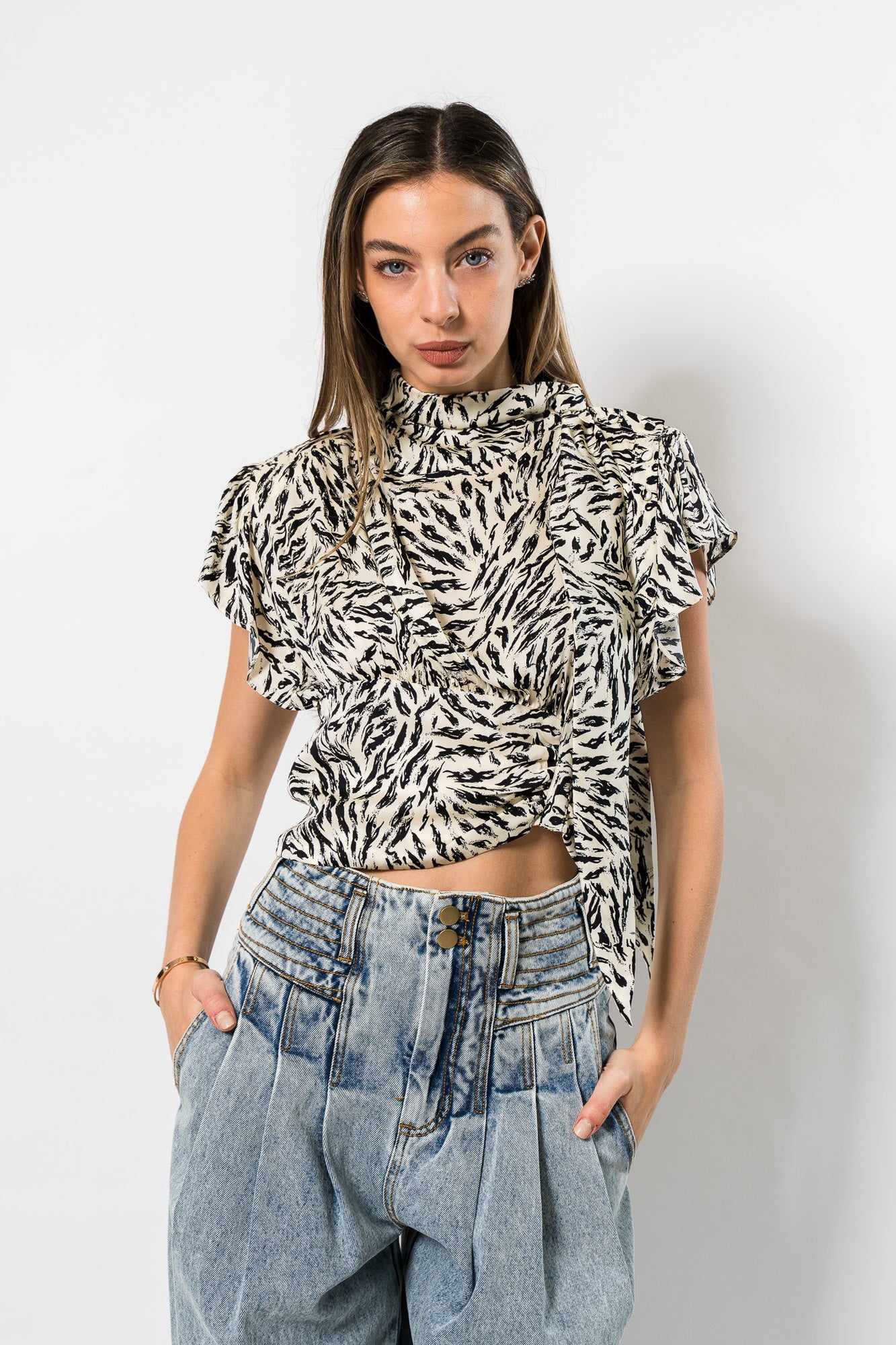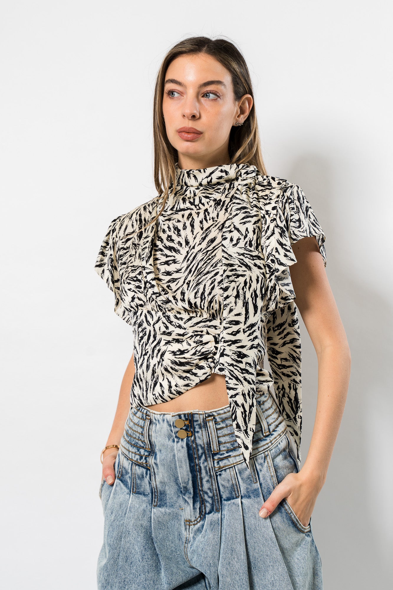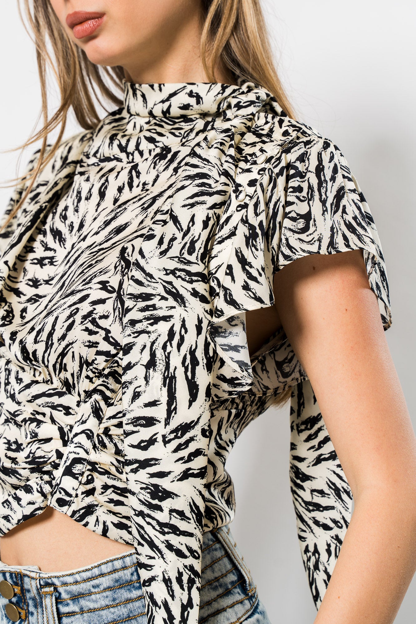 Aiko Blouse in Abstract Animal by Ronny Kobo.