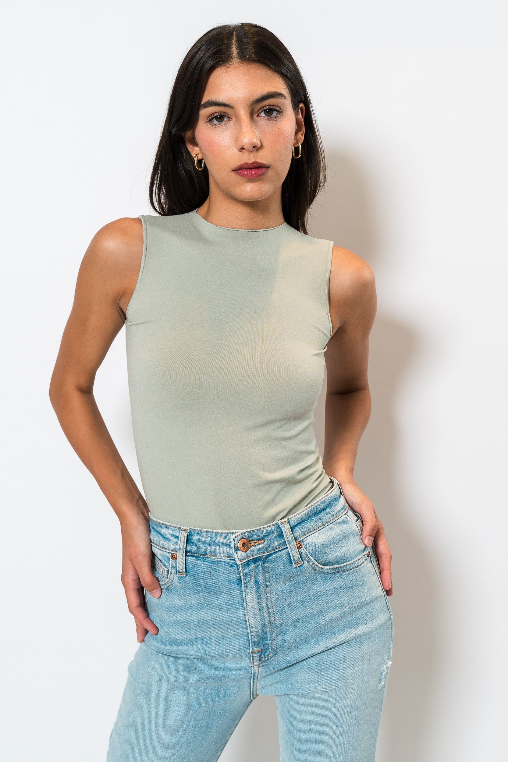 Bodysuit Cuello Alto sin Manga en Agave por Ellaz.
