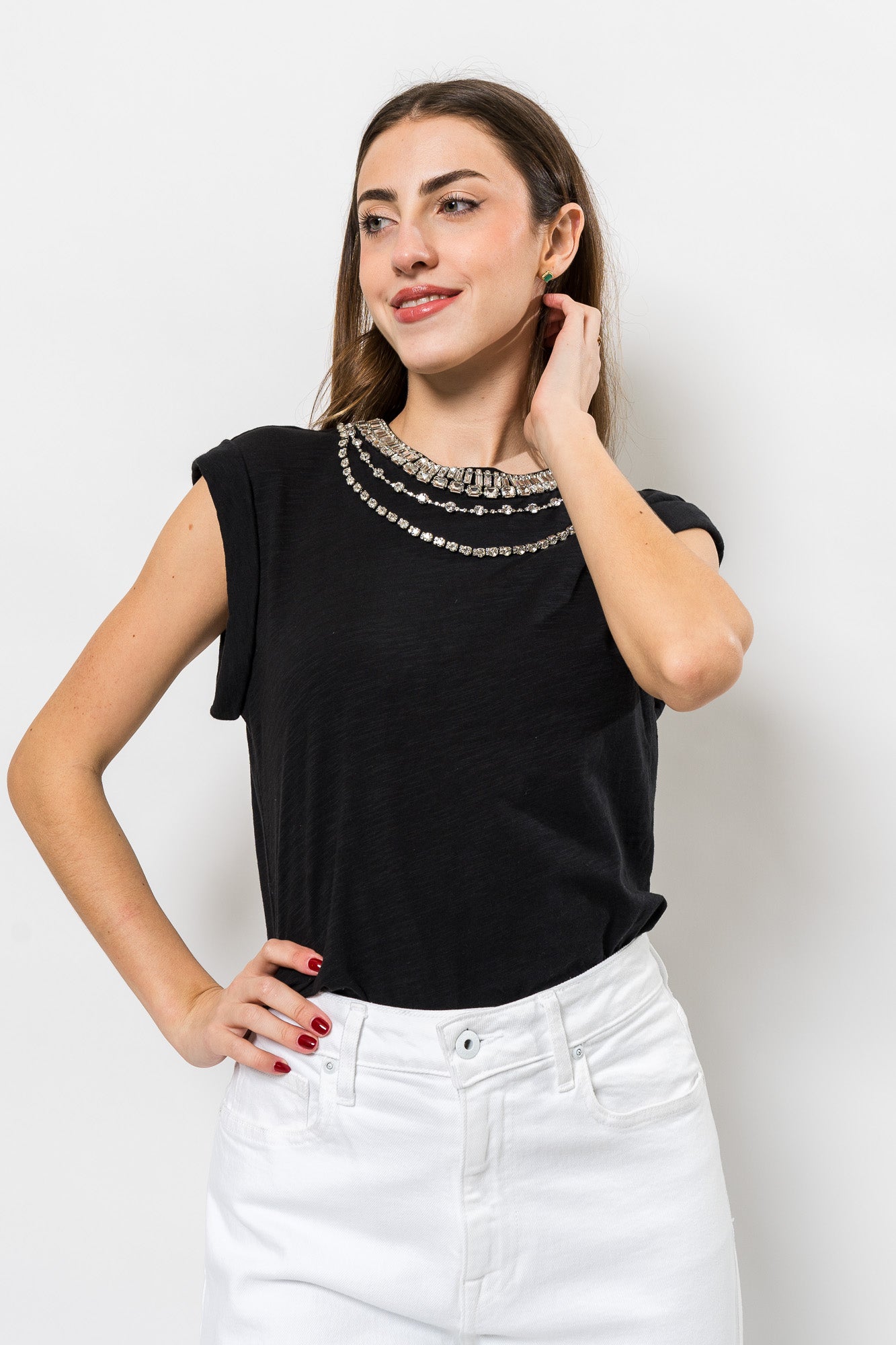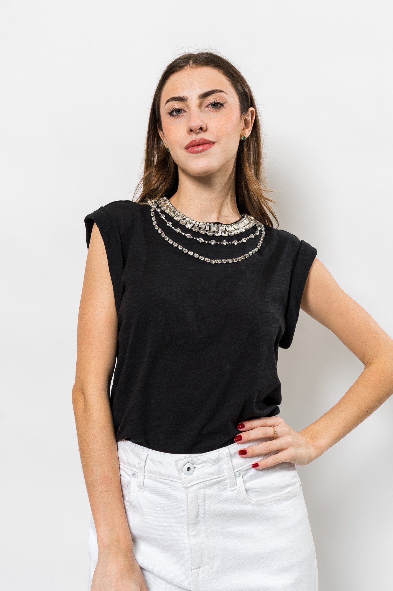 Layered Necklace Bella Tee in Black by Cinq à Sept