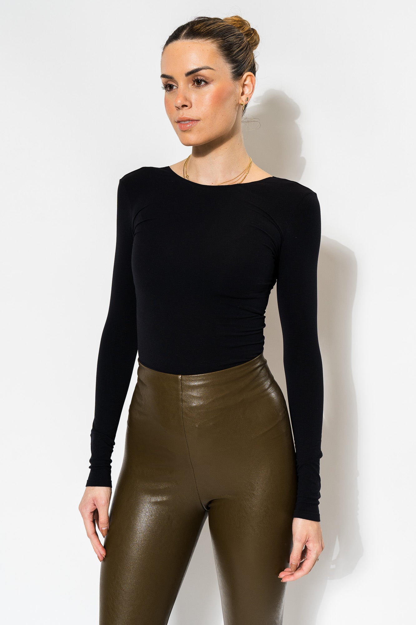 Ballet Scoop Back Crew Bodysuit in Black by Commando.