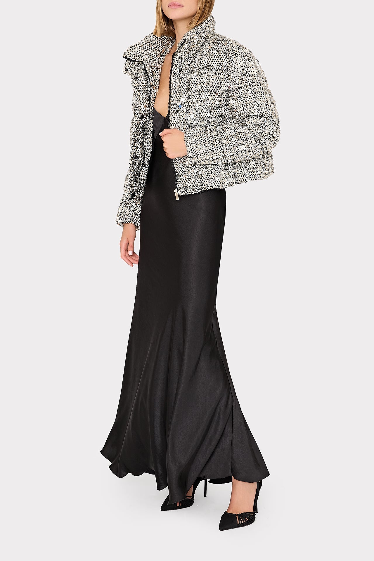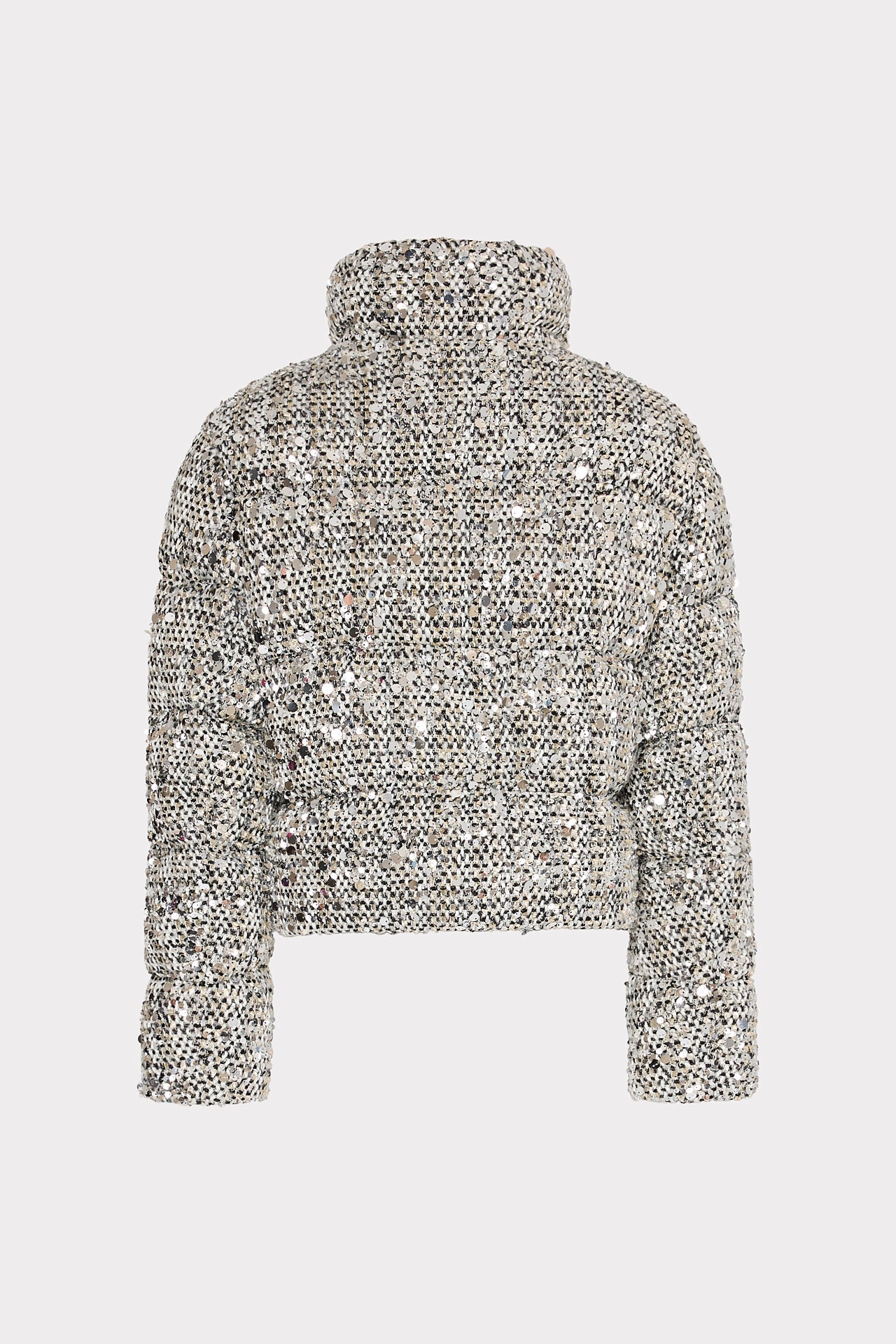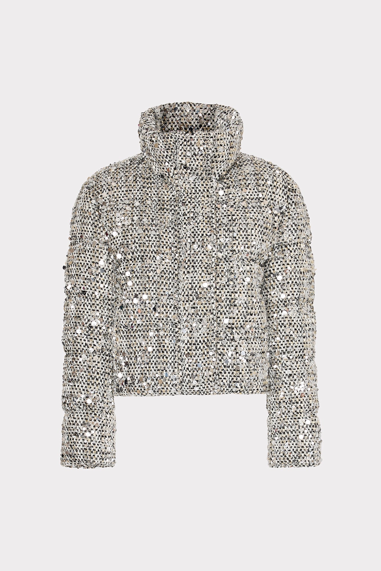 Hayes Sequins Tweed Puffer in Silver by Milly.