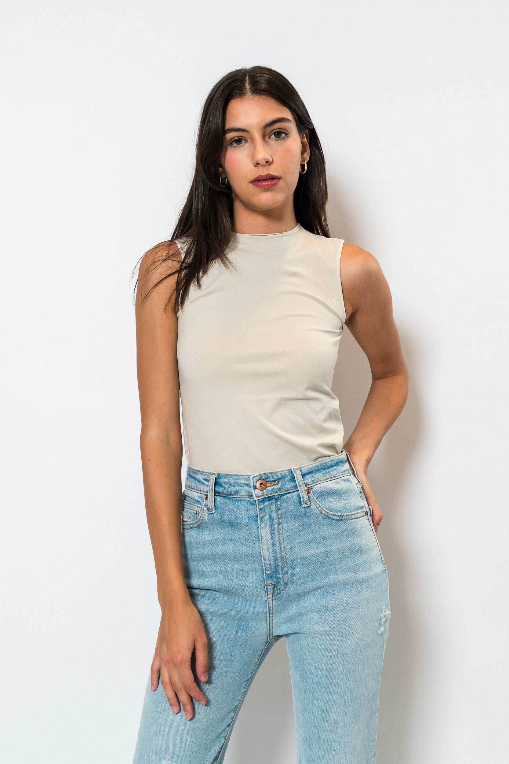 Bodysuit Cuello Alto sin Manga en Bone por Ellaz.