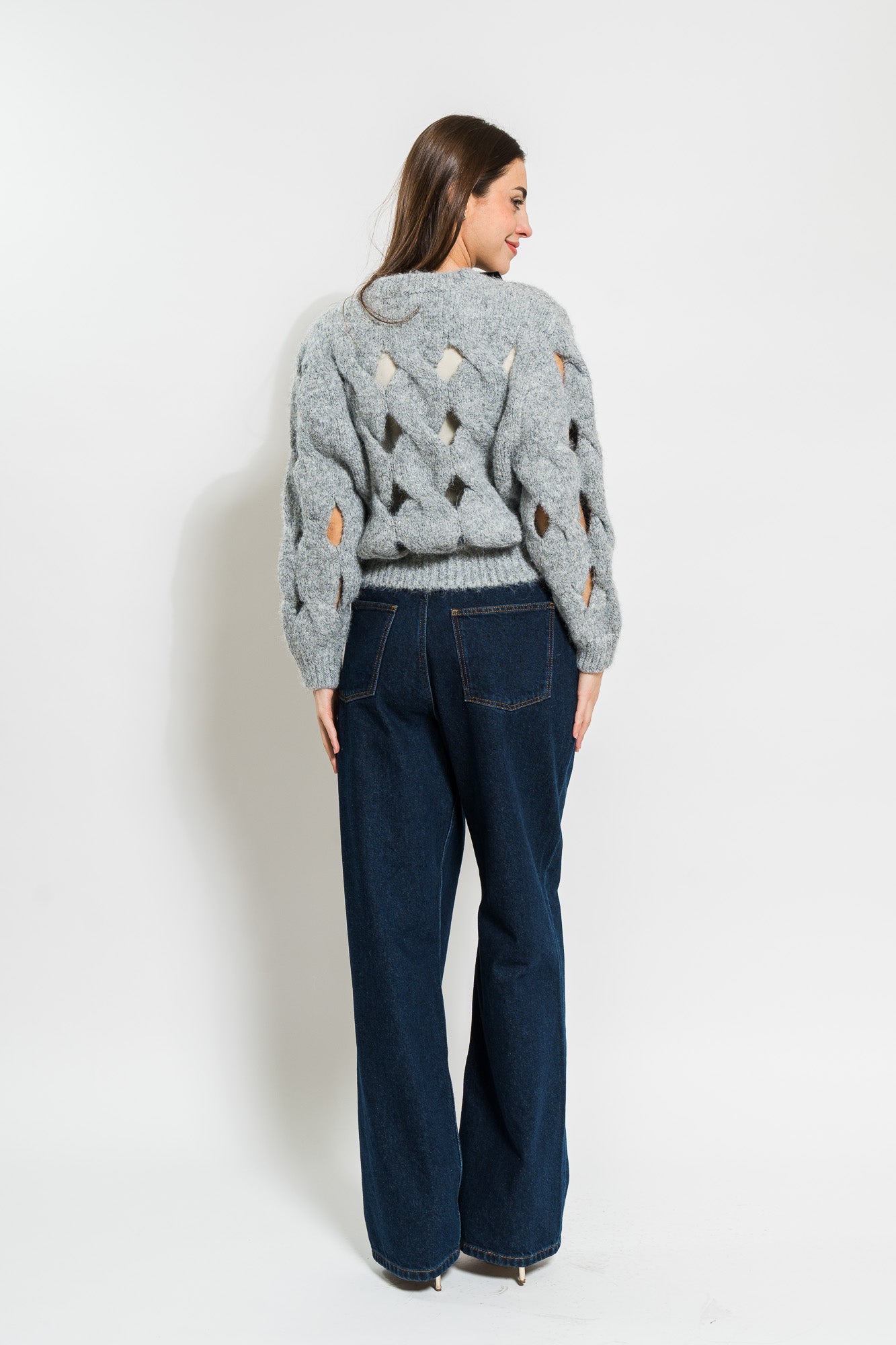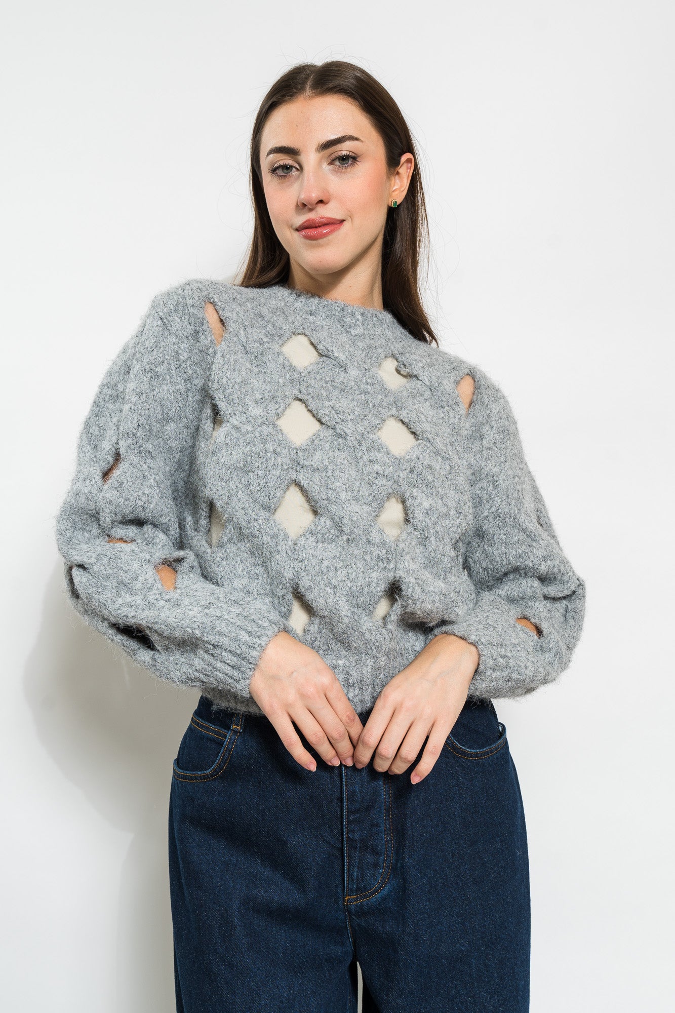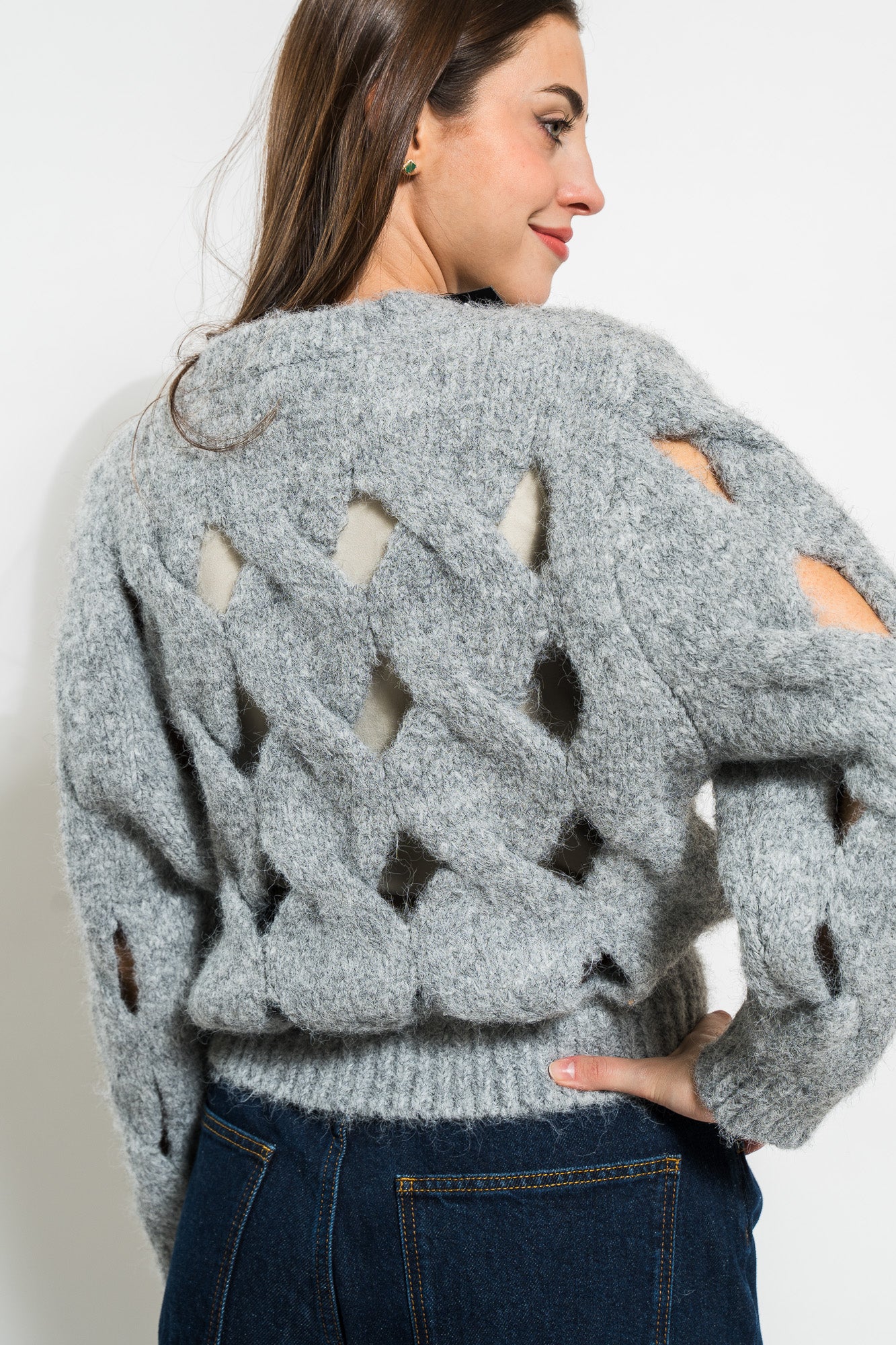 Open Knit Sweater in Heather Grey by Cynthia Rowley.
