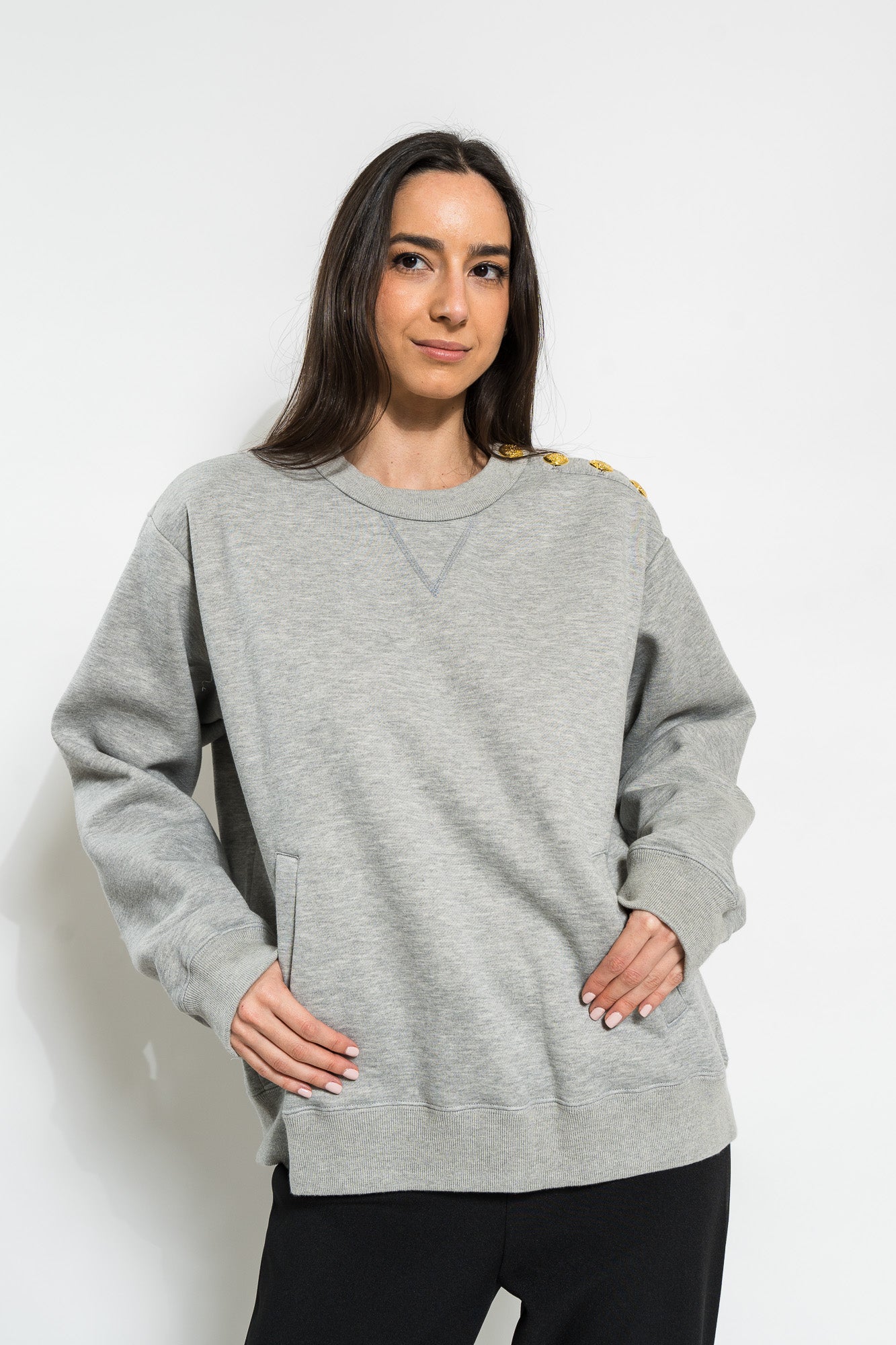 Shoulder Buttons Sweatshirt in Heather Grey by Cynthia Rowley.