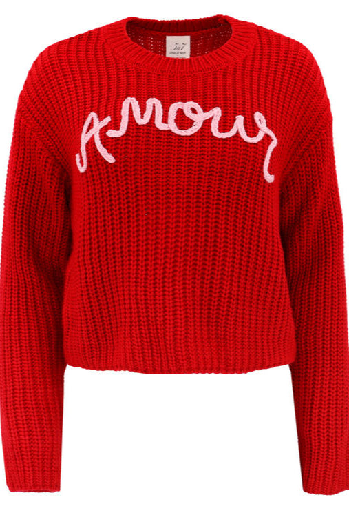 Amour Embroidered Shaker Crewneck in Red/Pink by Cinq à Sept.