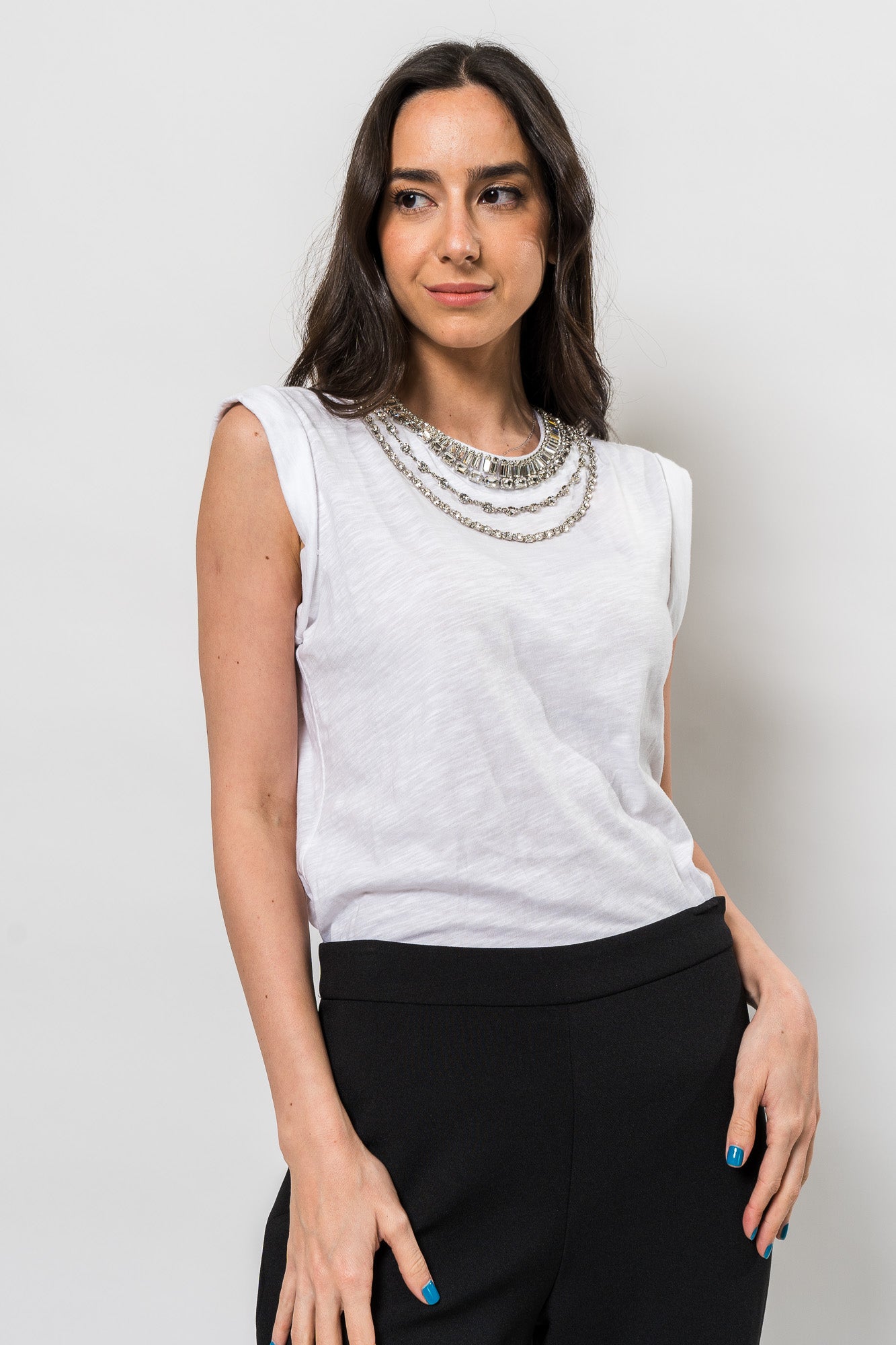 Layered Necklace Bella Tee in White by Cinq à Sept.
