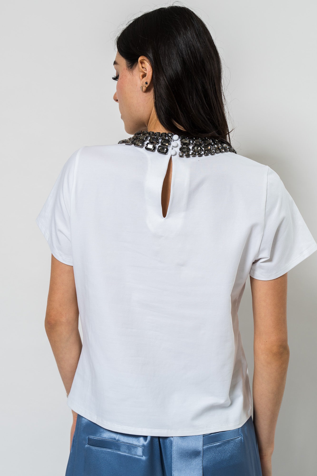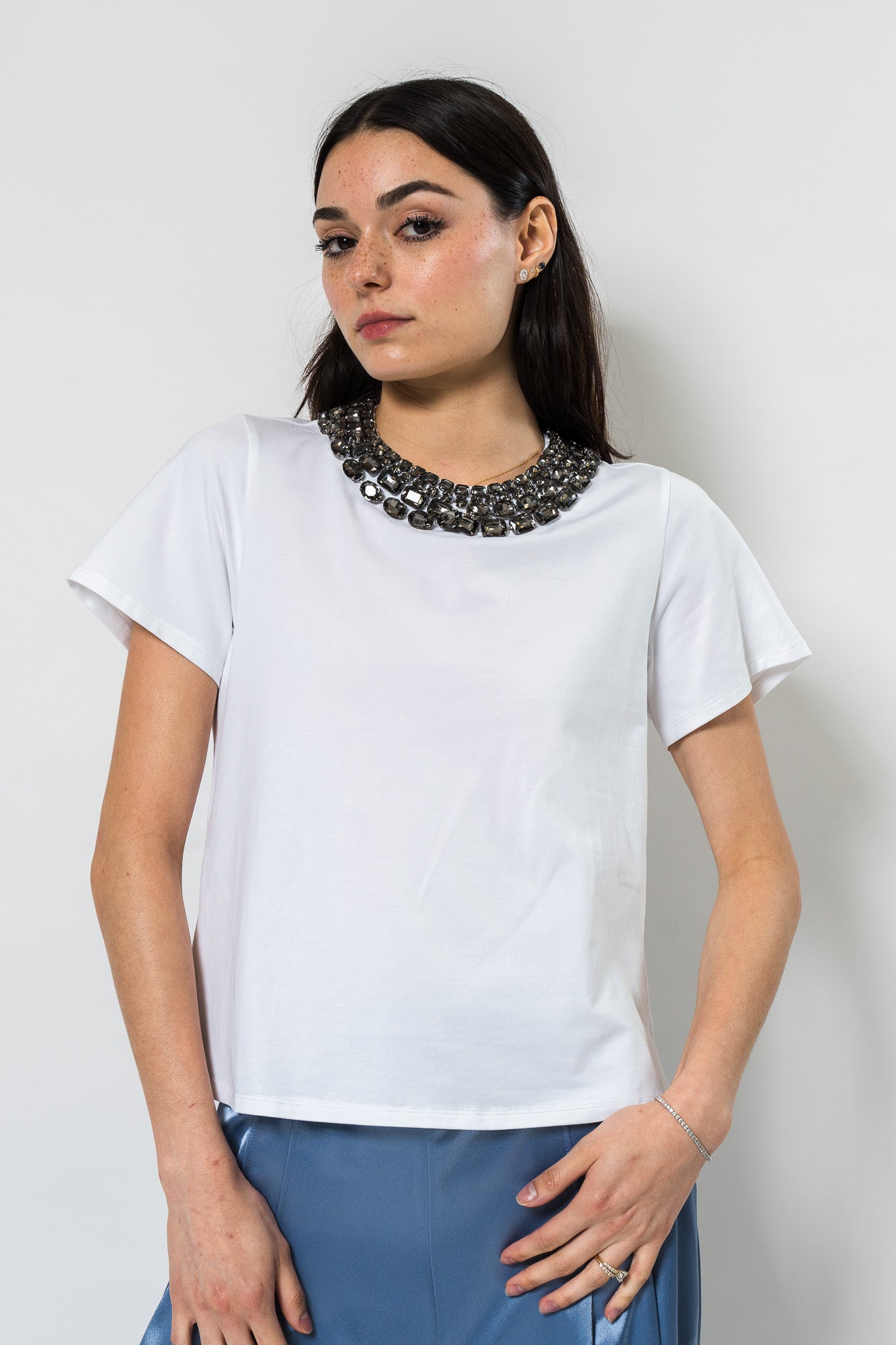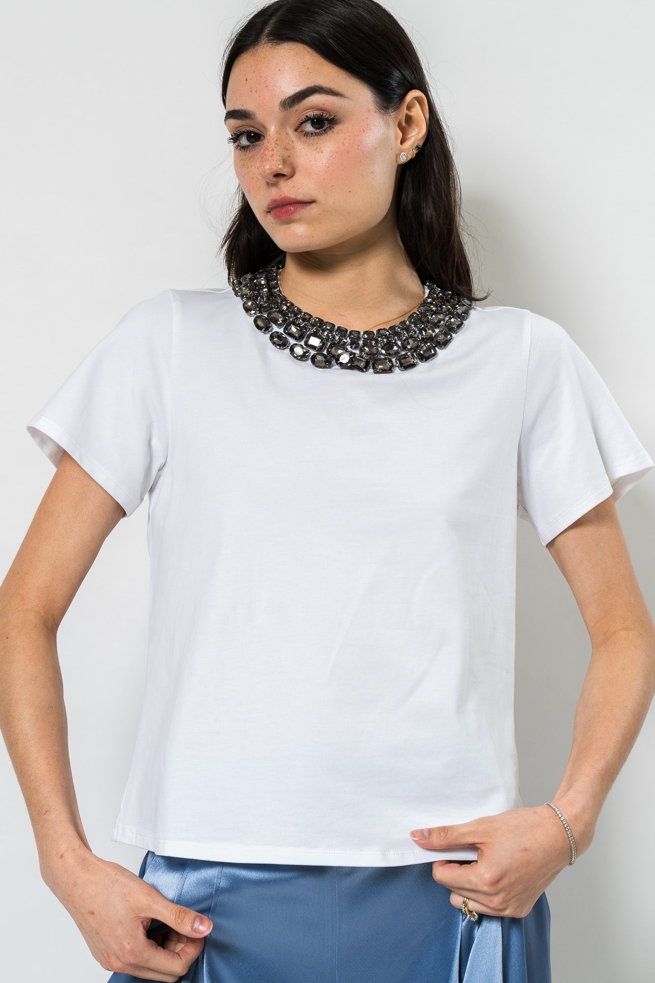 Chunky Necklace Shrunken Tee in White by Cinq à Sept.