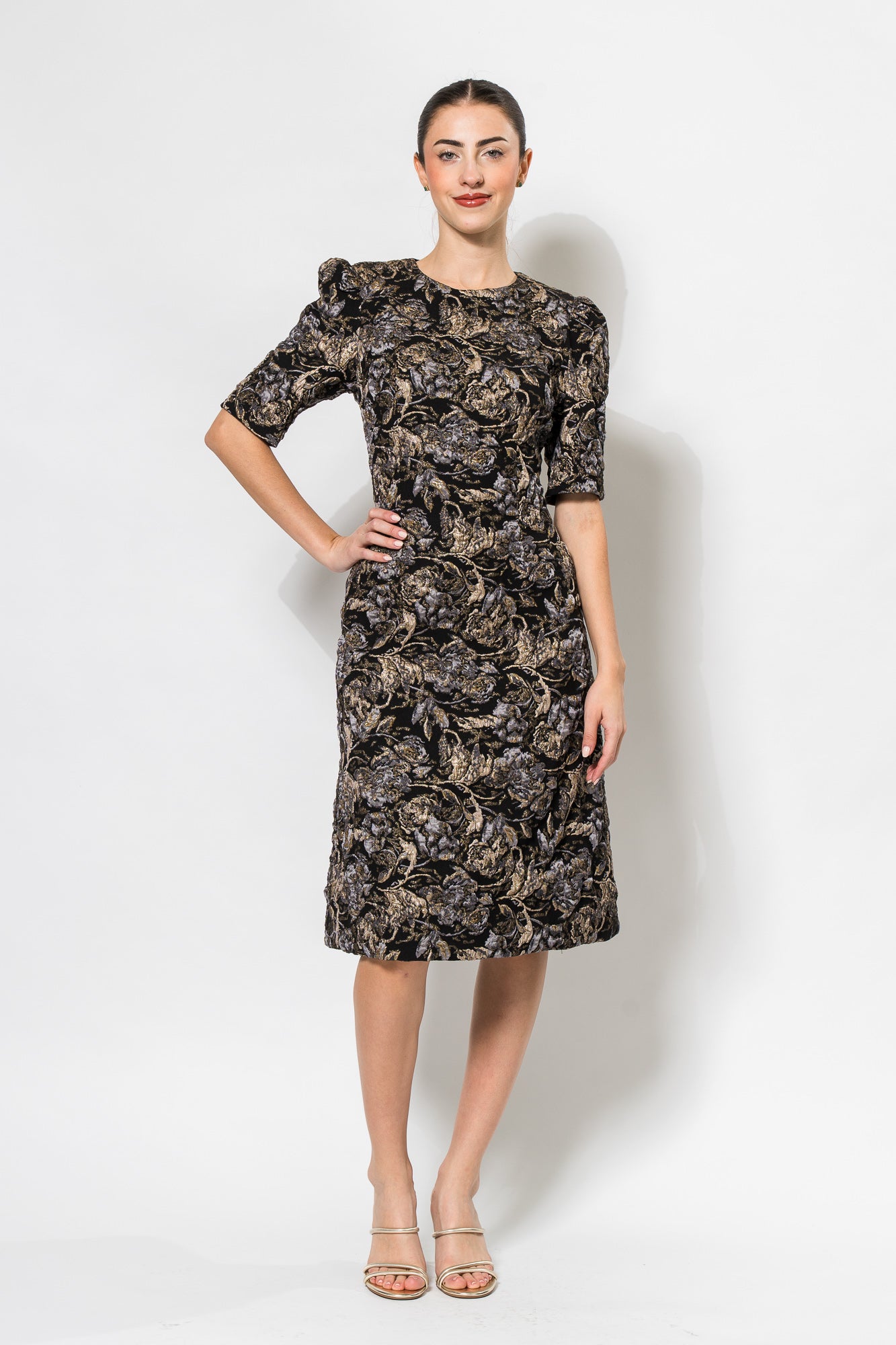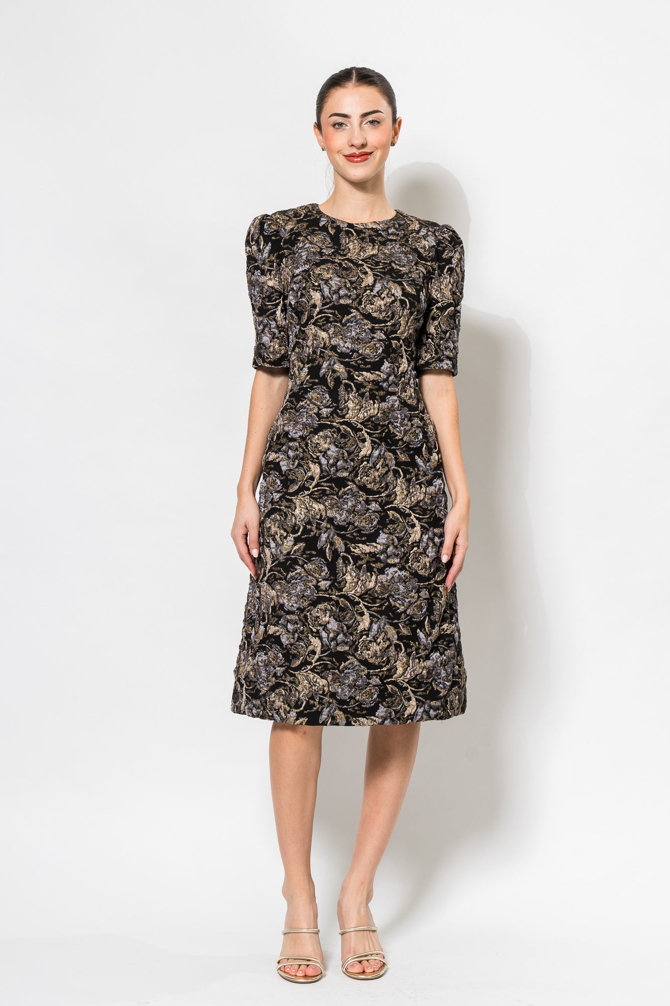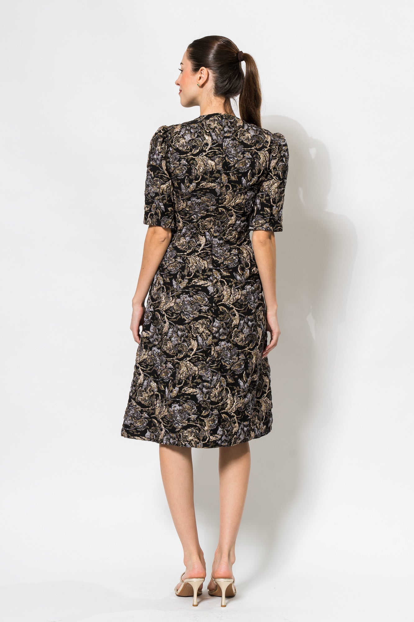 Textured Jacquard Fit And Flare Dress in Black Multi by Teri Jon.