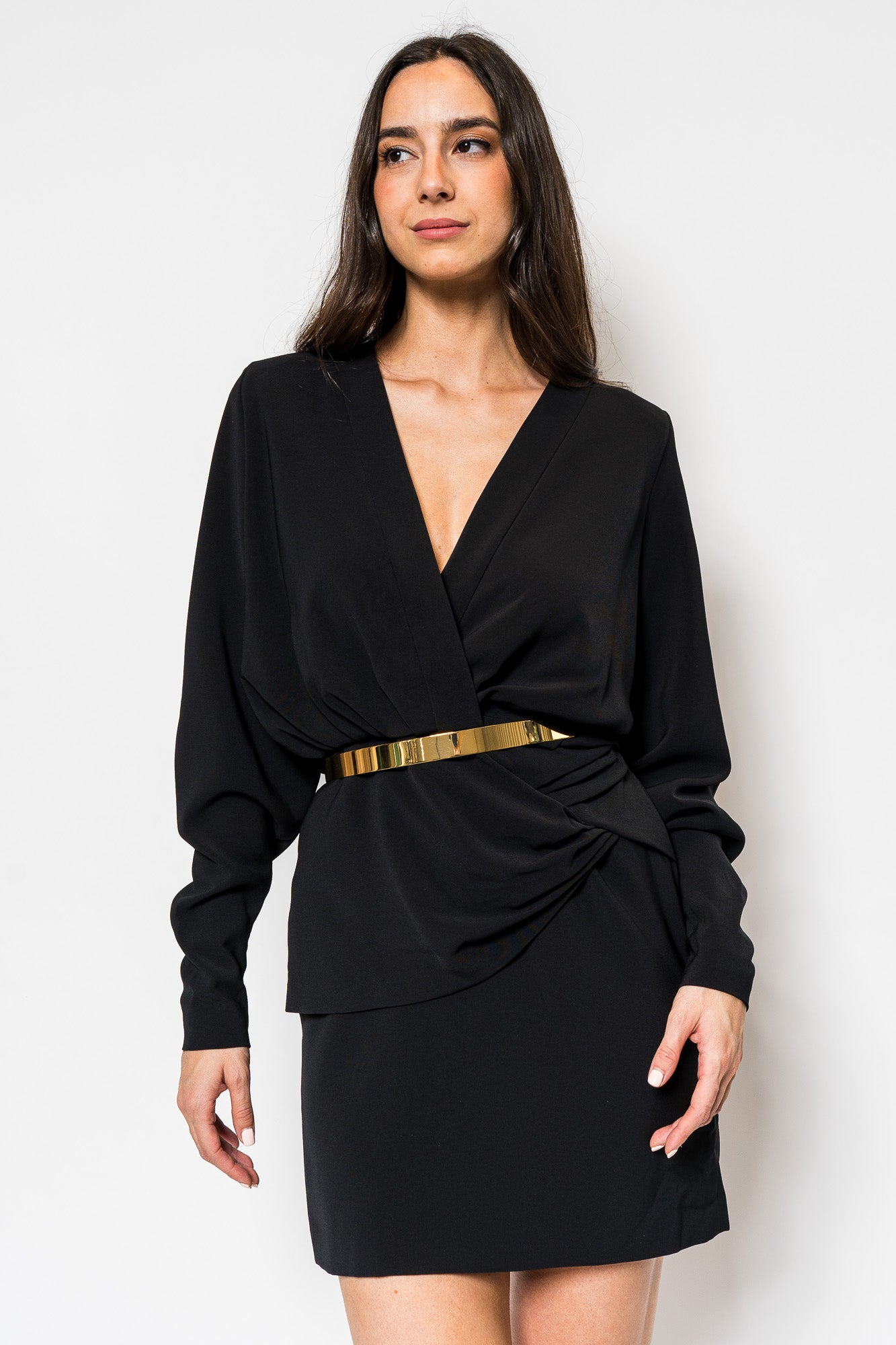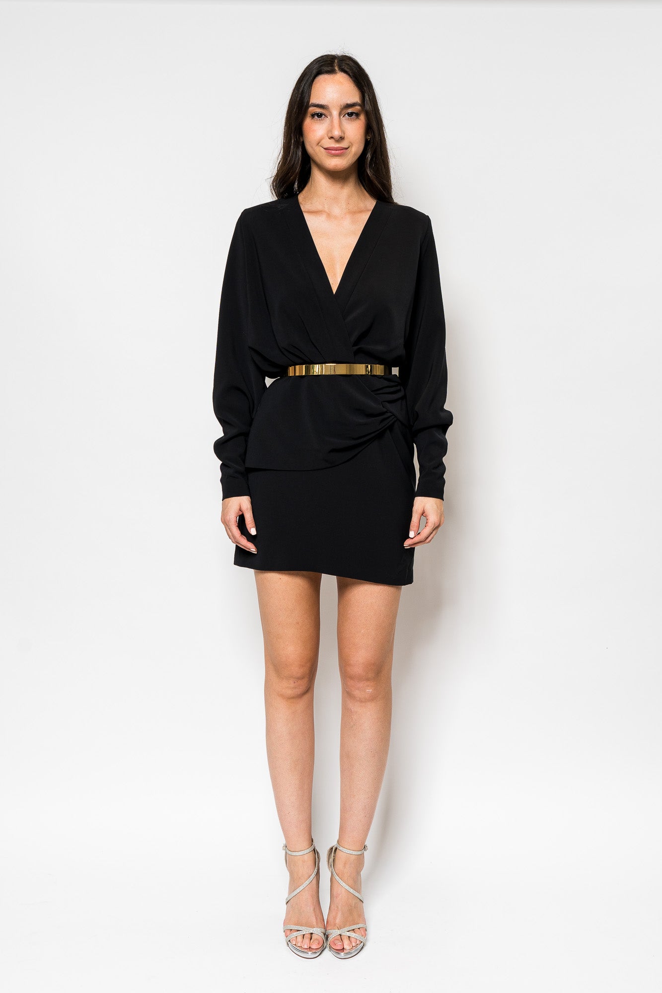 Morci Short Dress in Black & Macchi Belt in Gold by Alexis.
