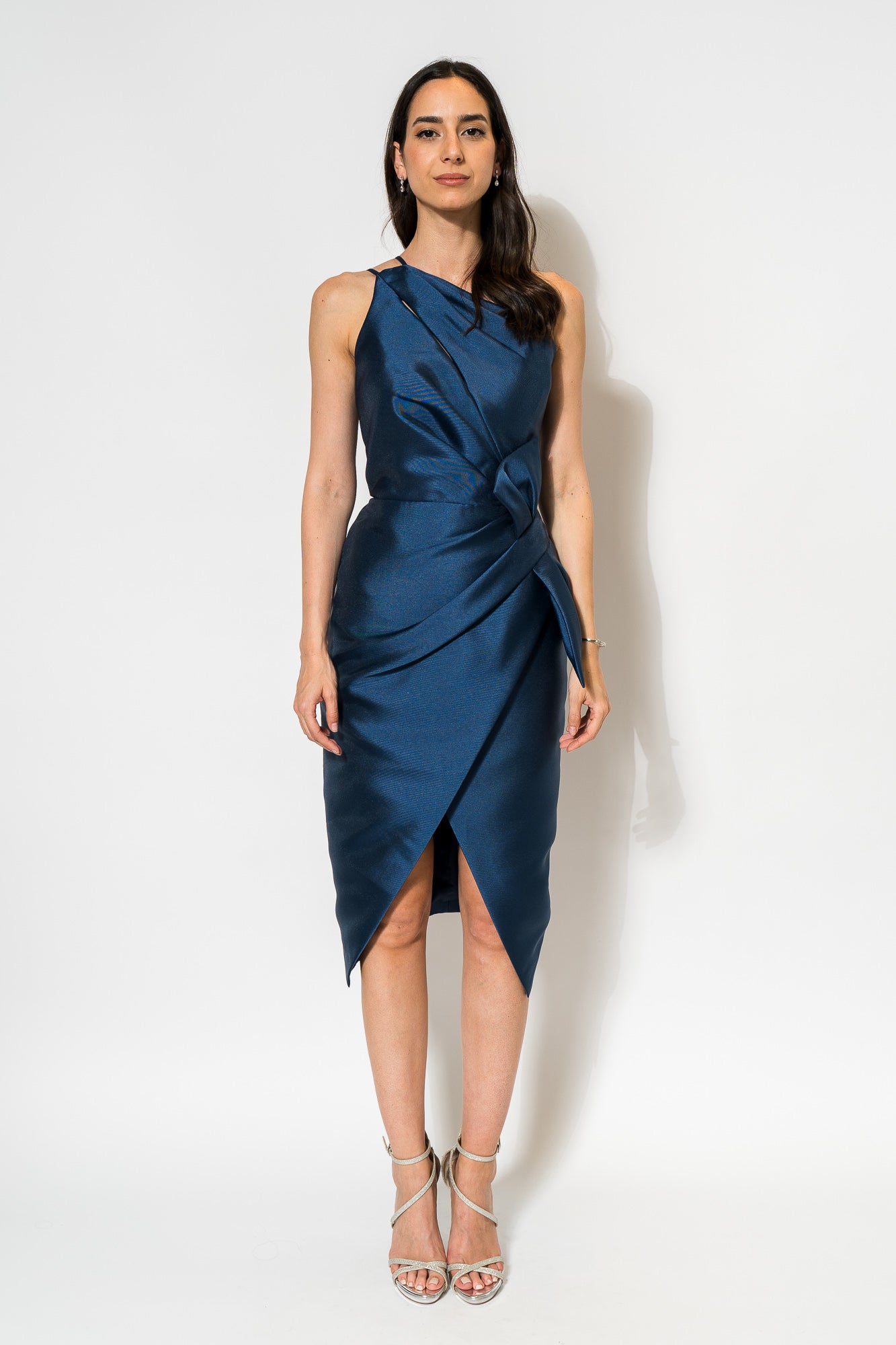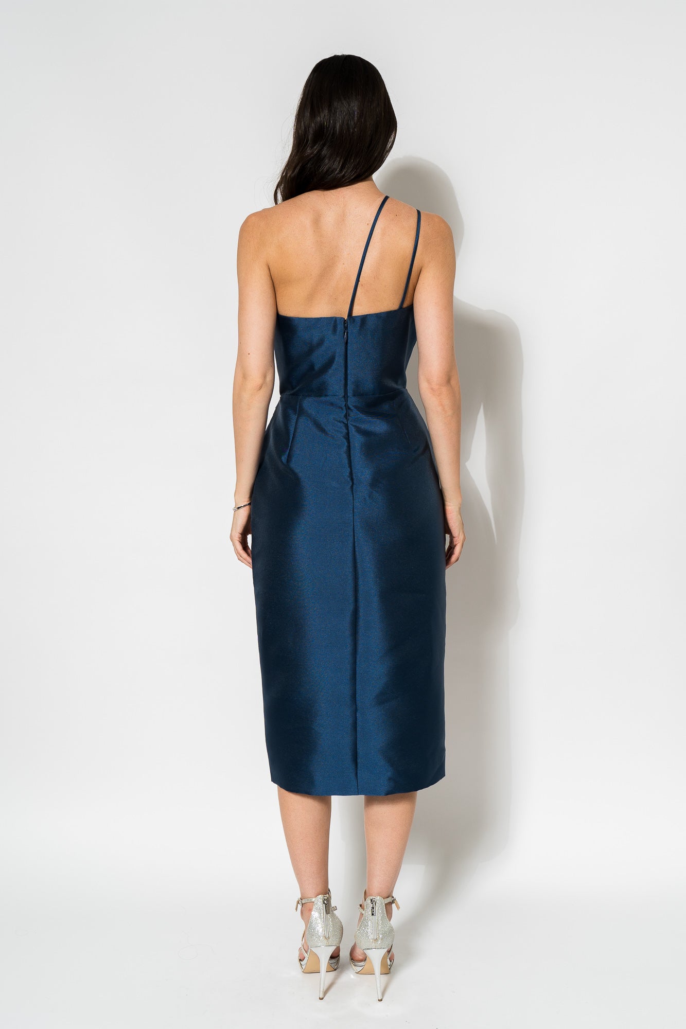 Mikado One Shoulder Bow Dress in French Blue by Amsale.