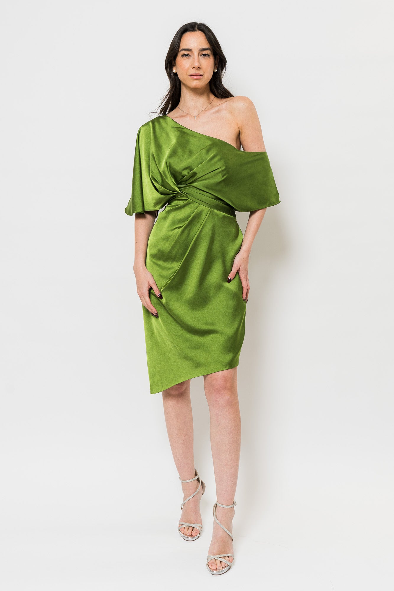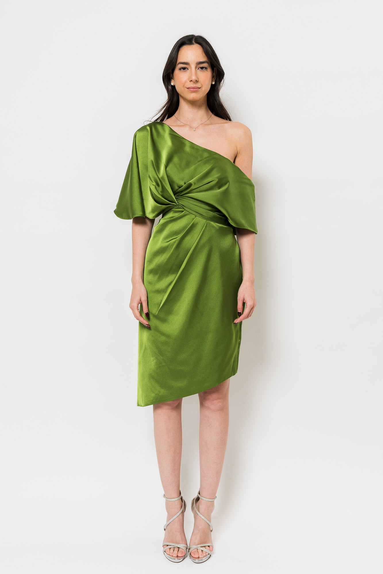 Polly Satin Cocktail Dress in Paradise Green by Theia.