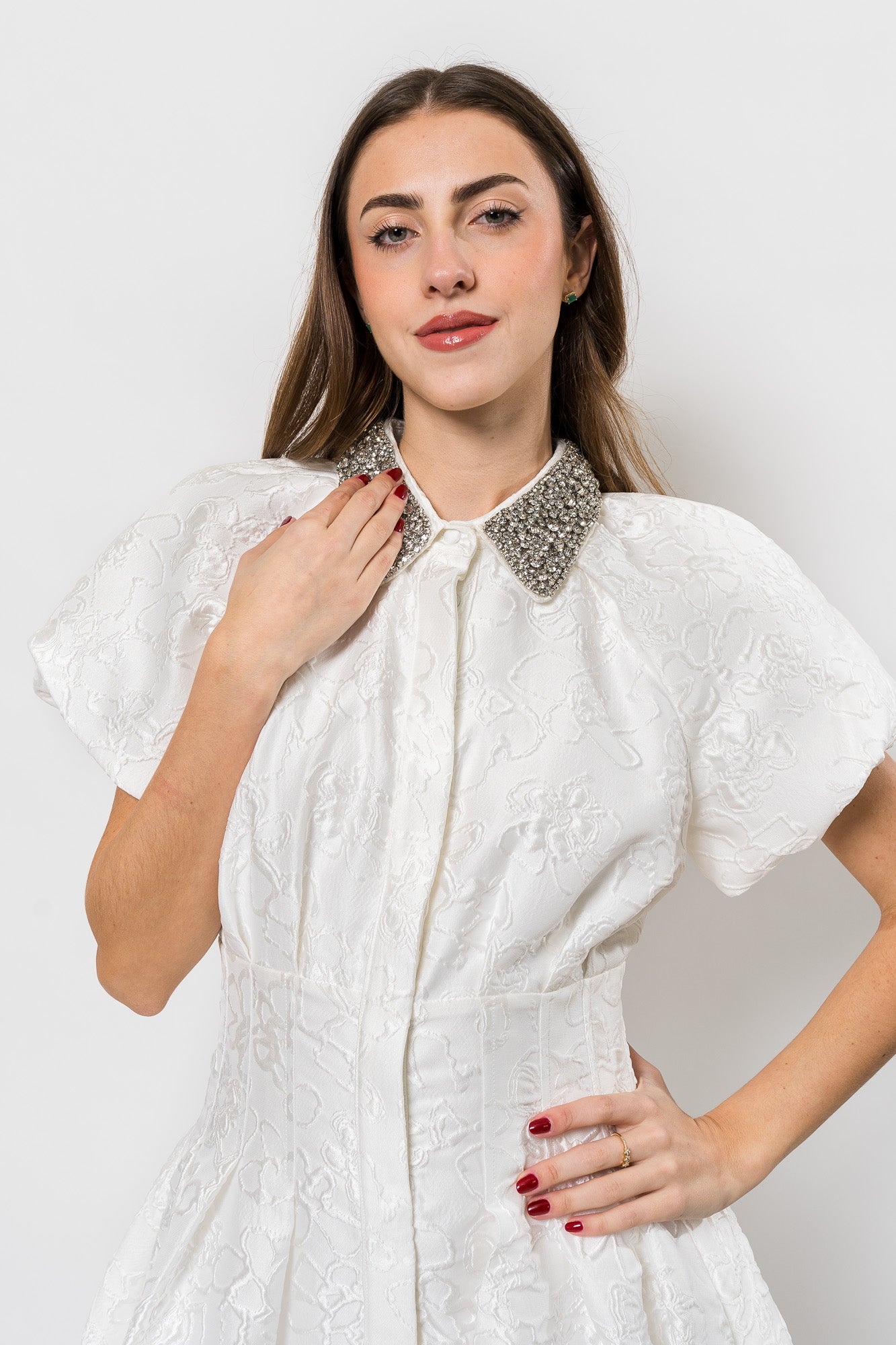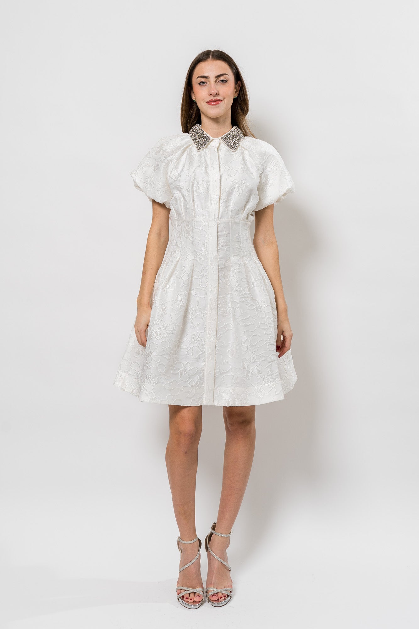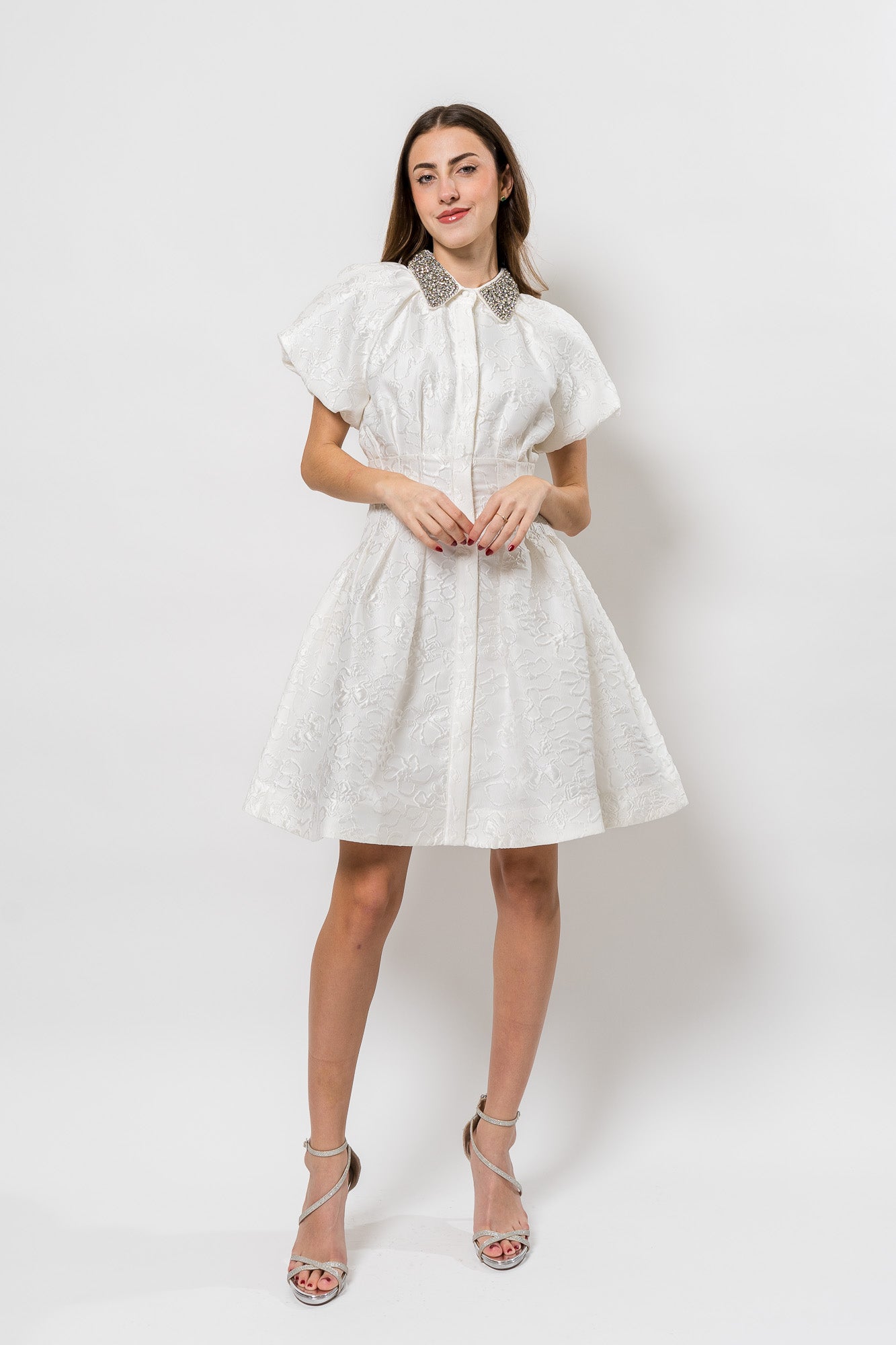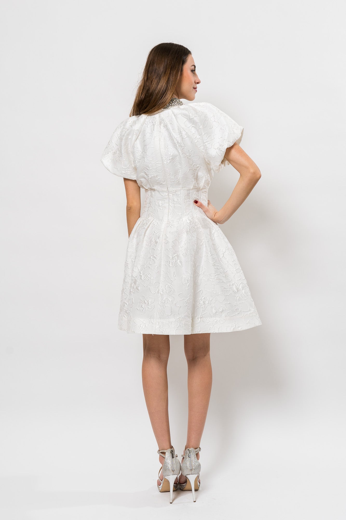 Esther Puff Sleeve Mini Dress in Ivory by Rebecca Vallance.