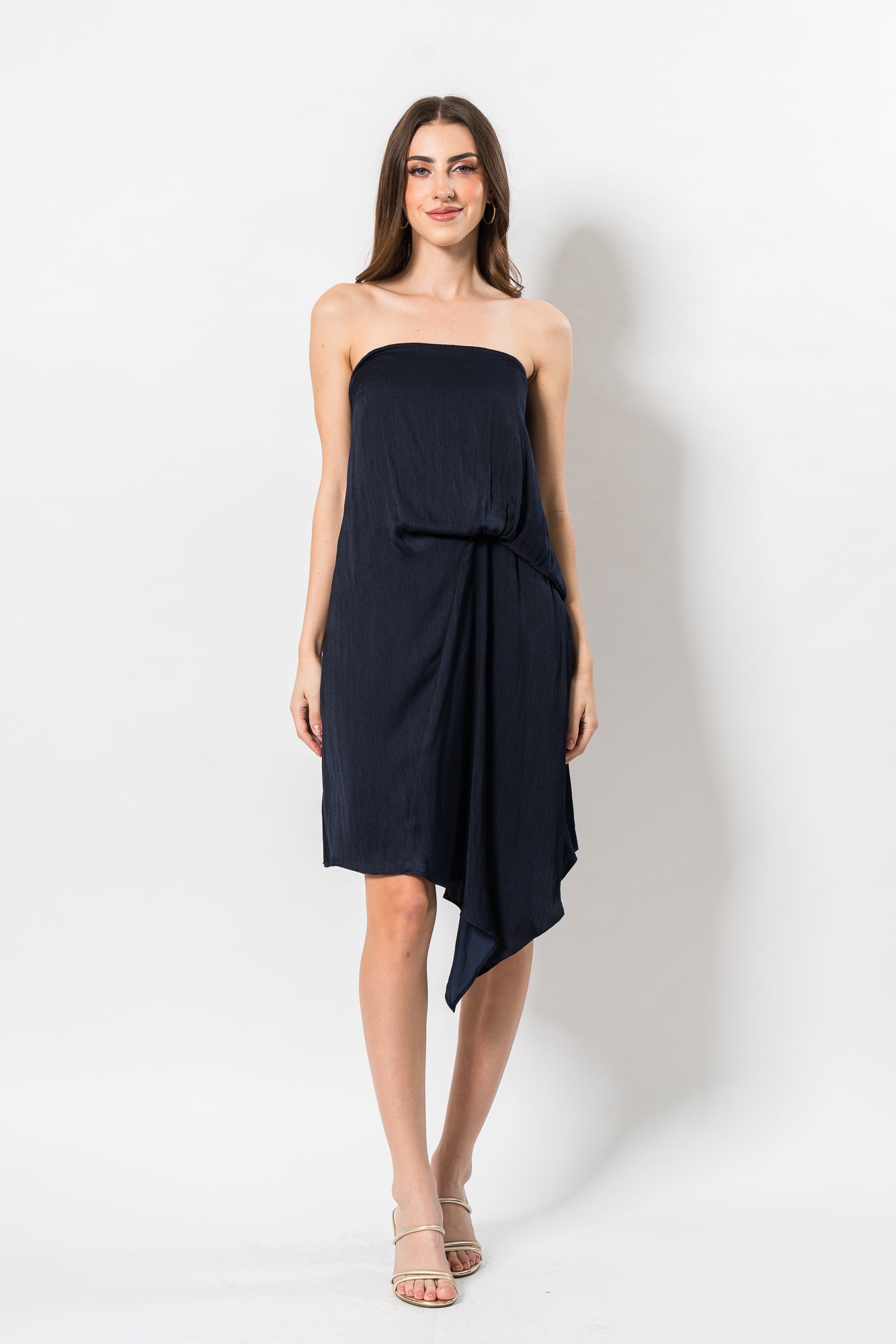 Strapless Drape Dress in Midnight by BCBG Maxazria.