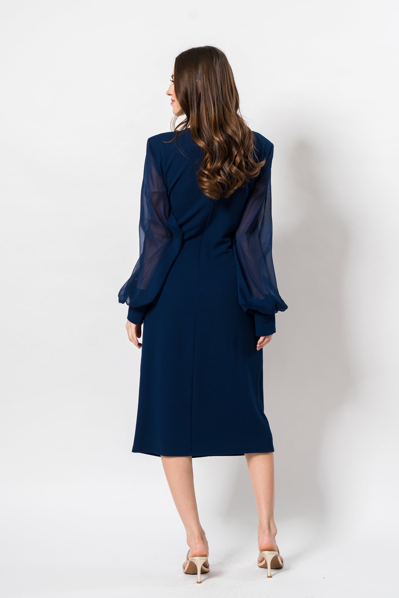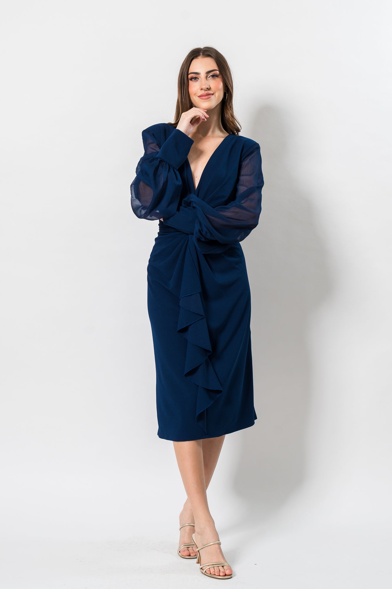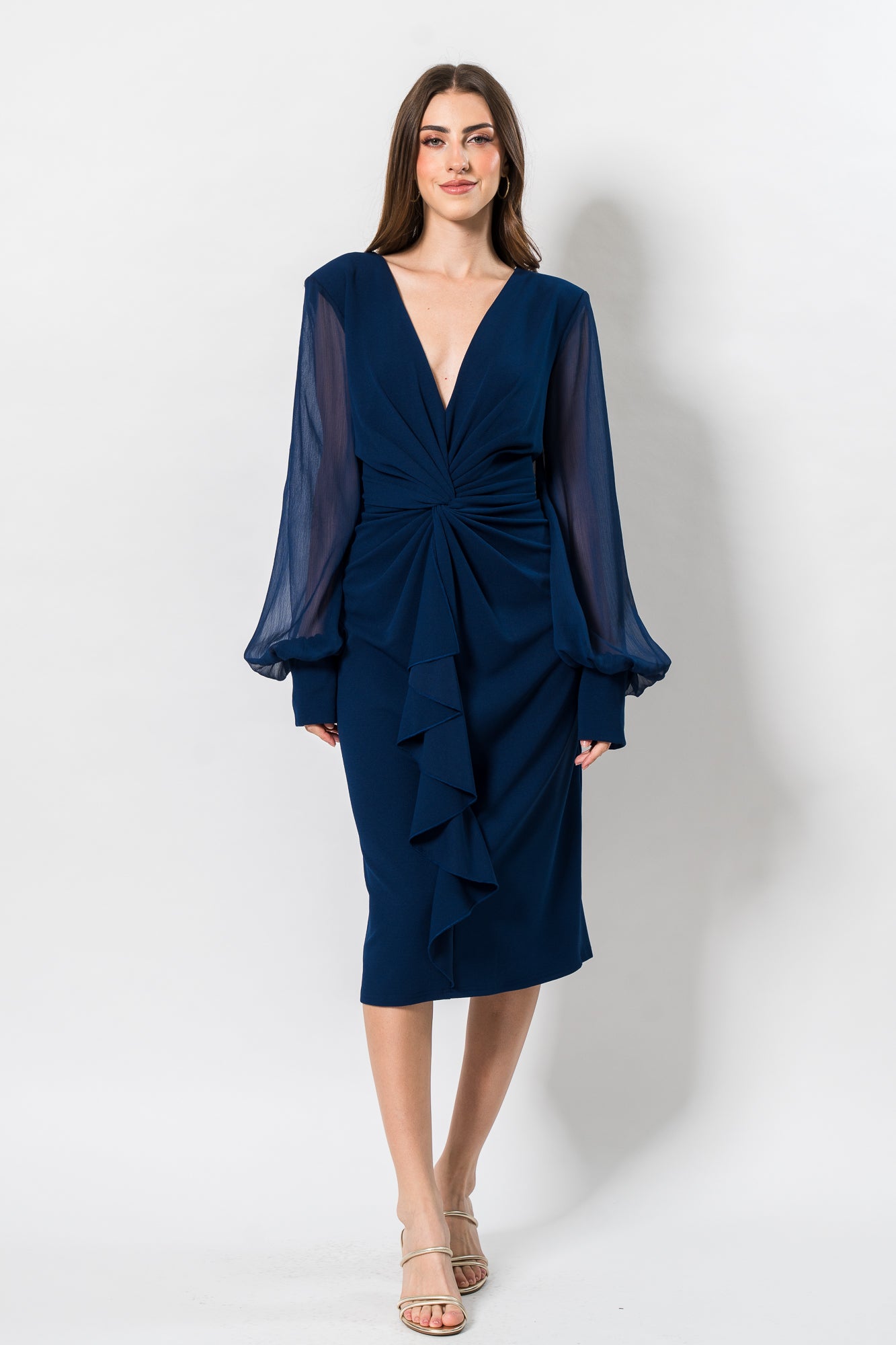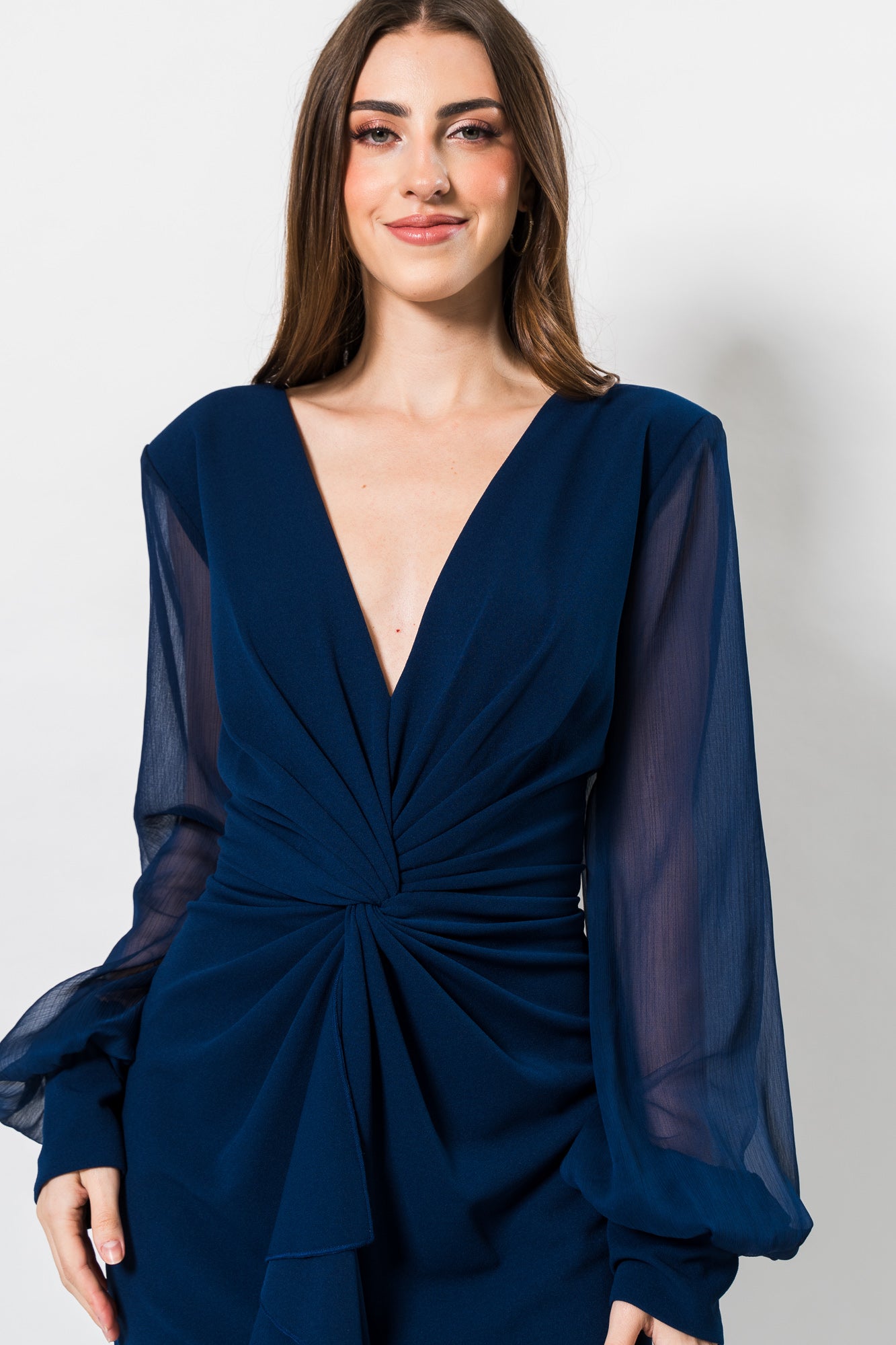 Tyra Twist-Drape Dress in Midnight by Tadashi Shoji.