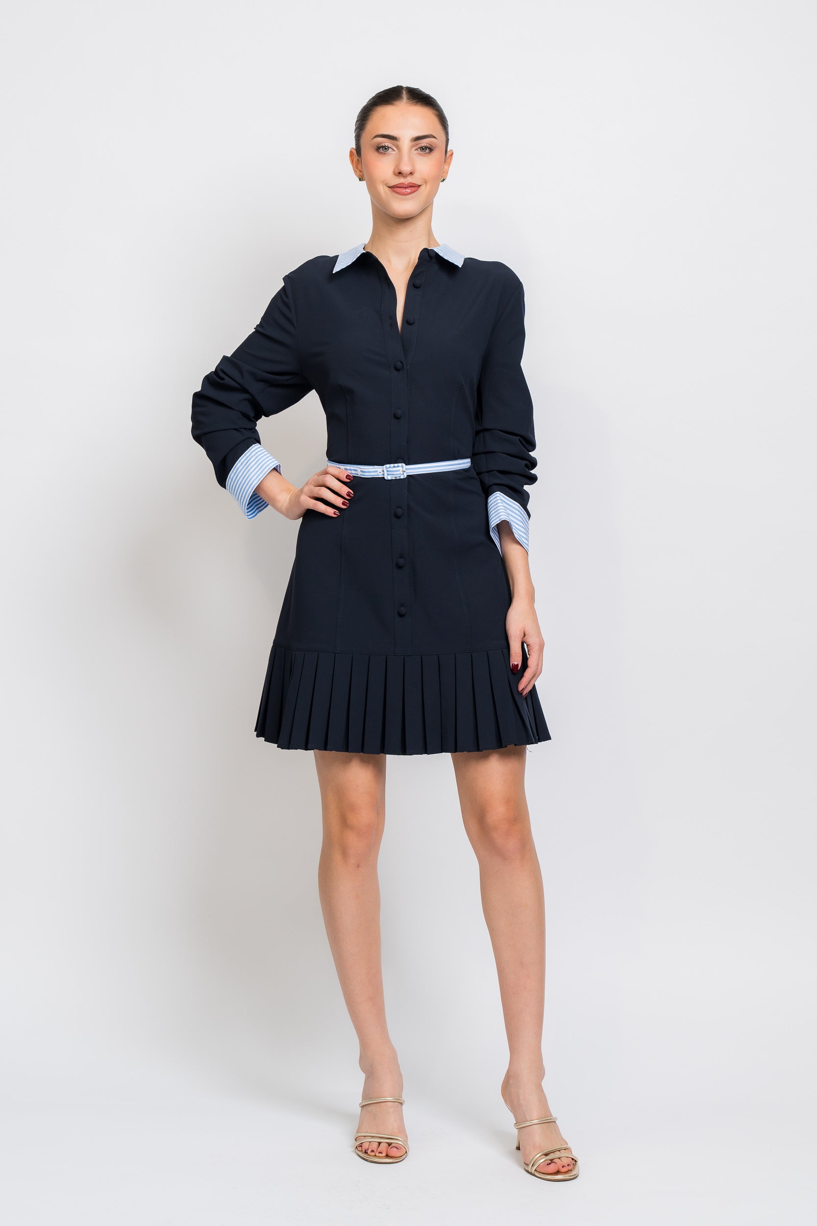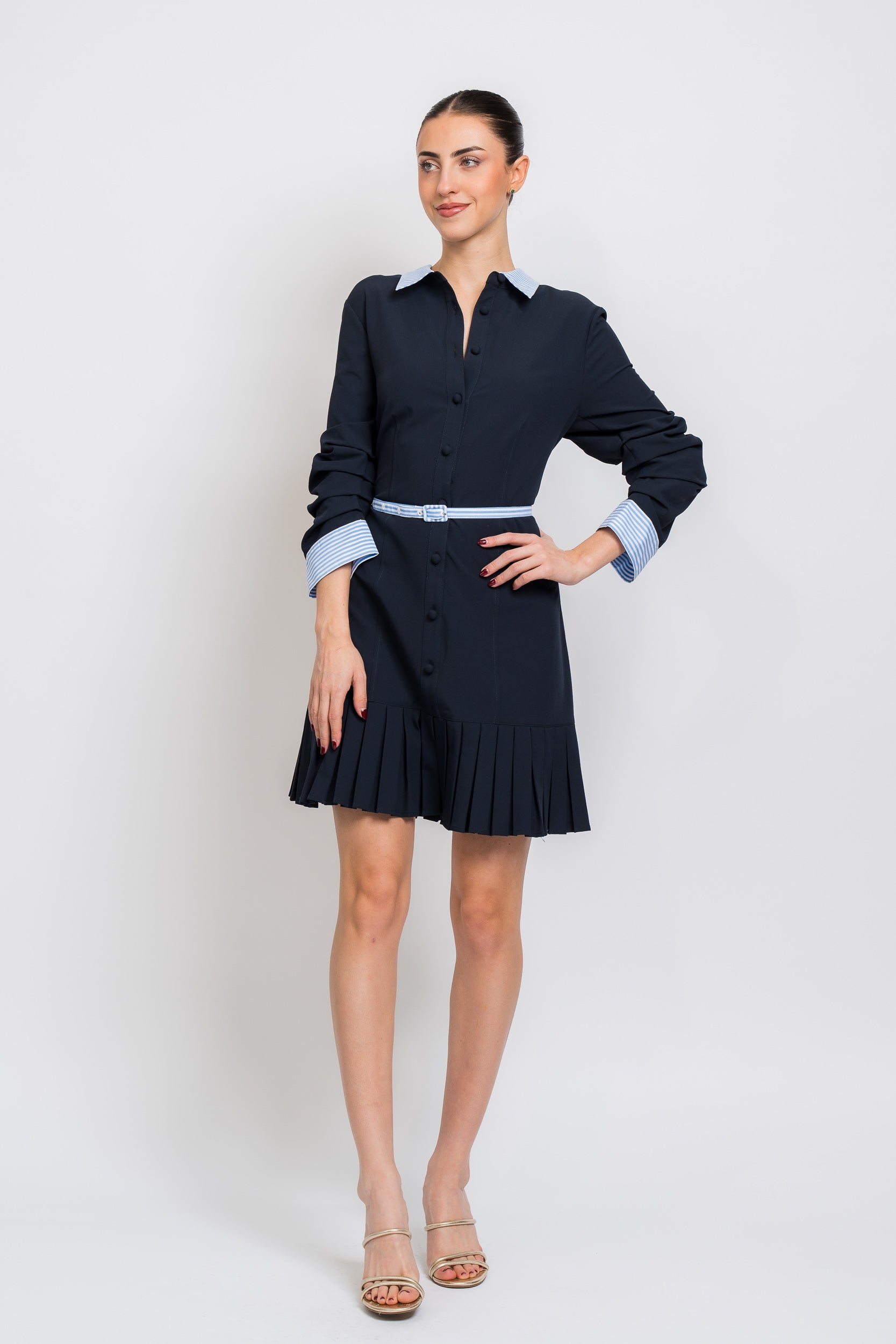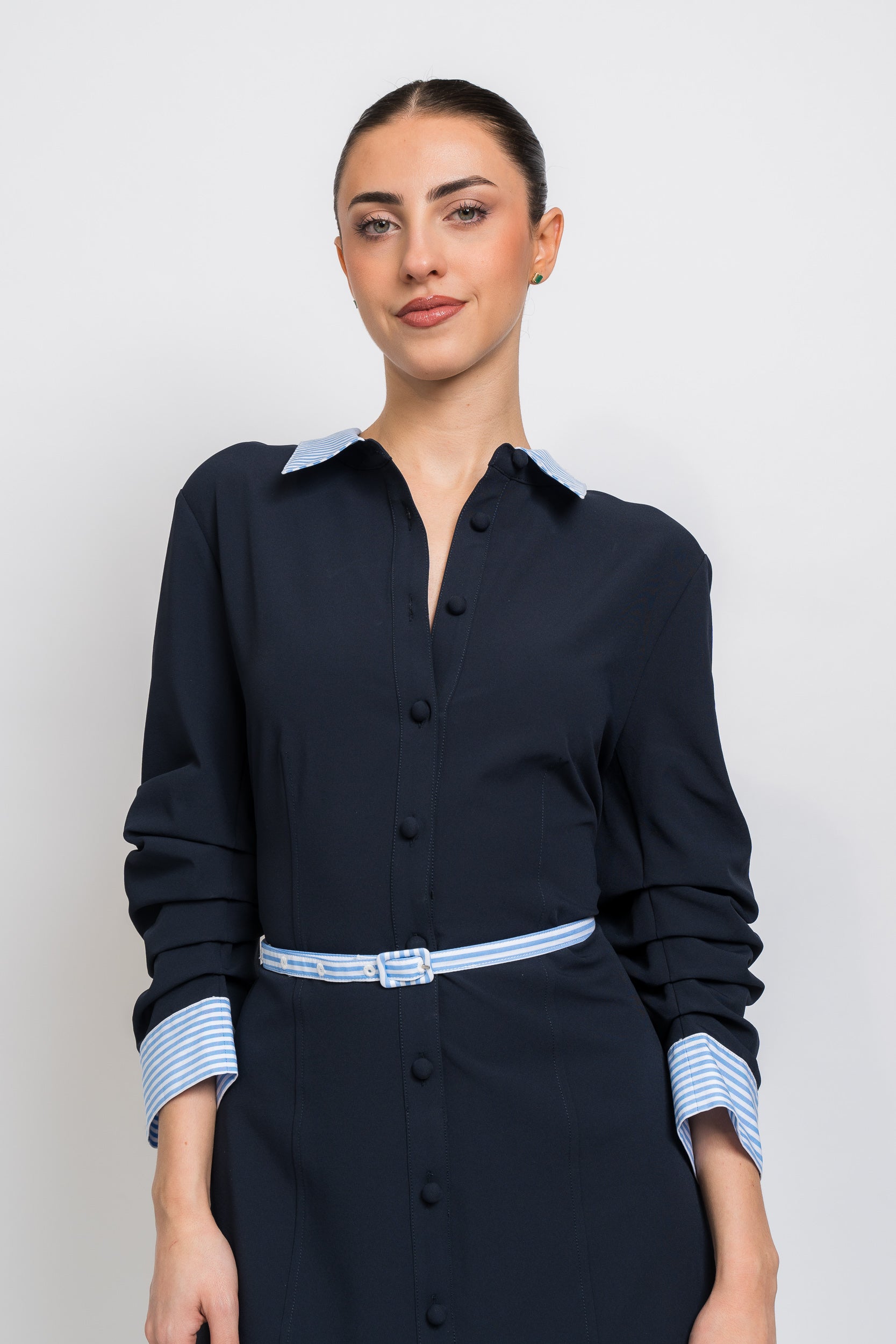 Stripe Shirting Lucilla Dress in Navy/Blue Stripe by Cinq a Sept.
