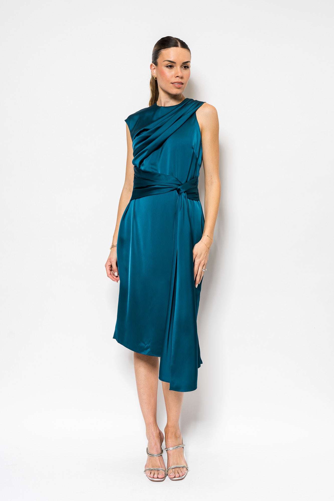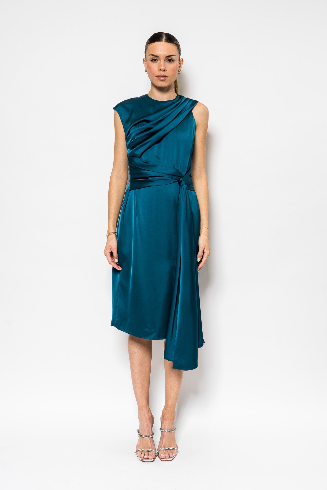 Josie Draped Cocktail Dress in Night Swim by Theia.