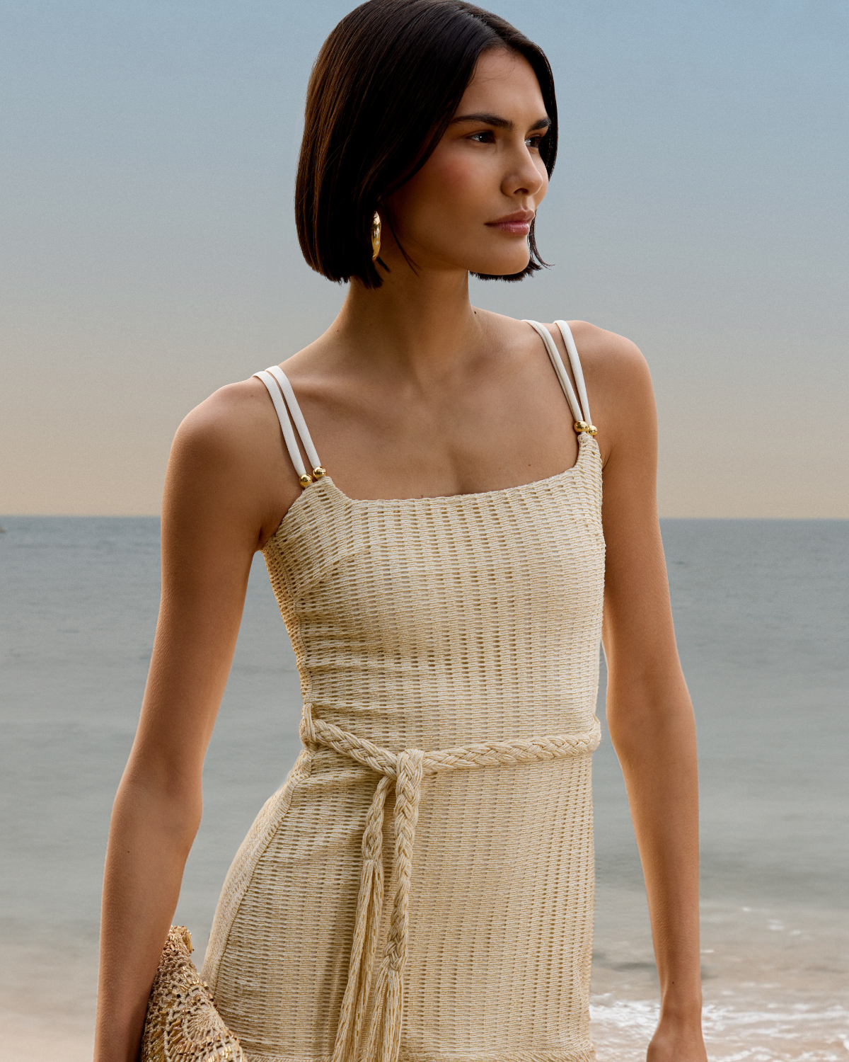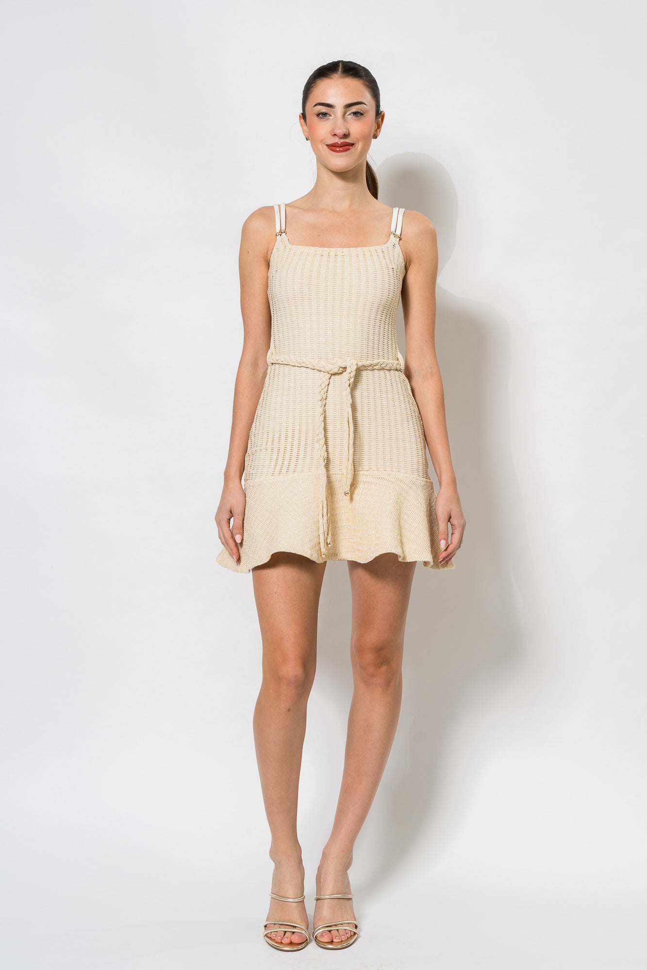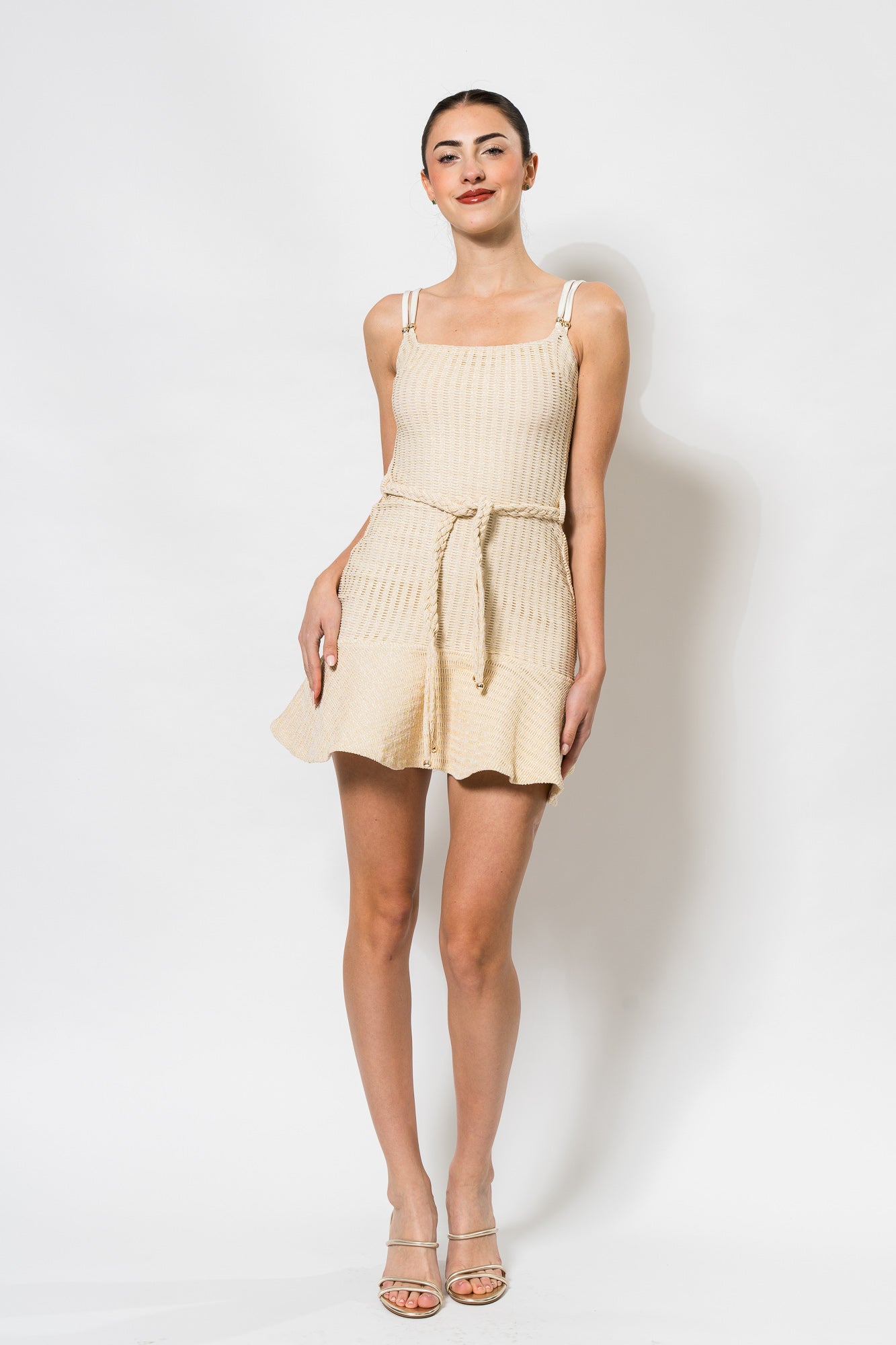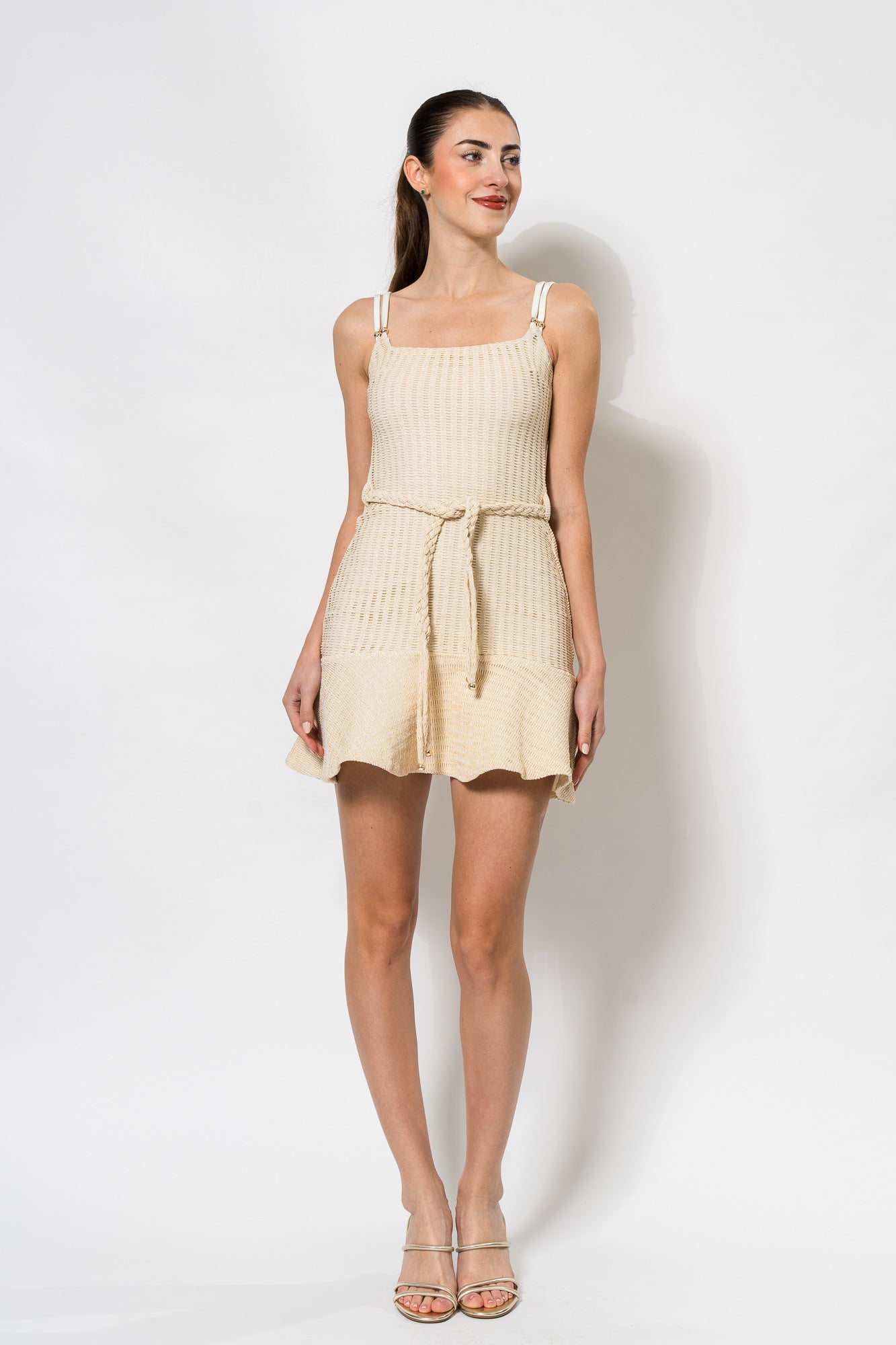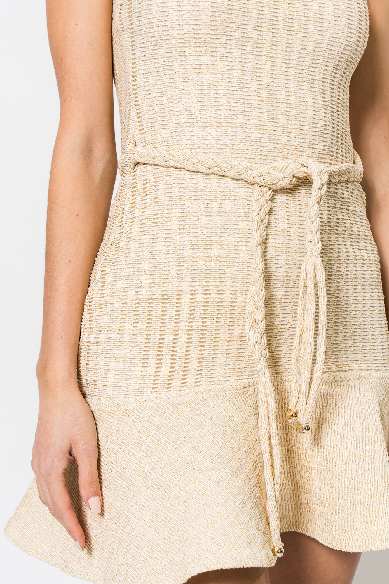 Metallic Knit Mini Dress in Off White by PatBo.