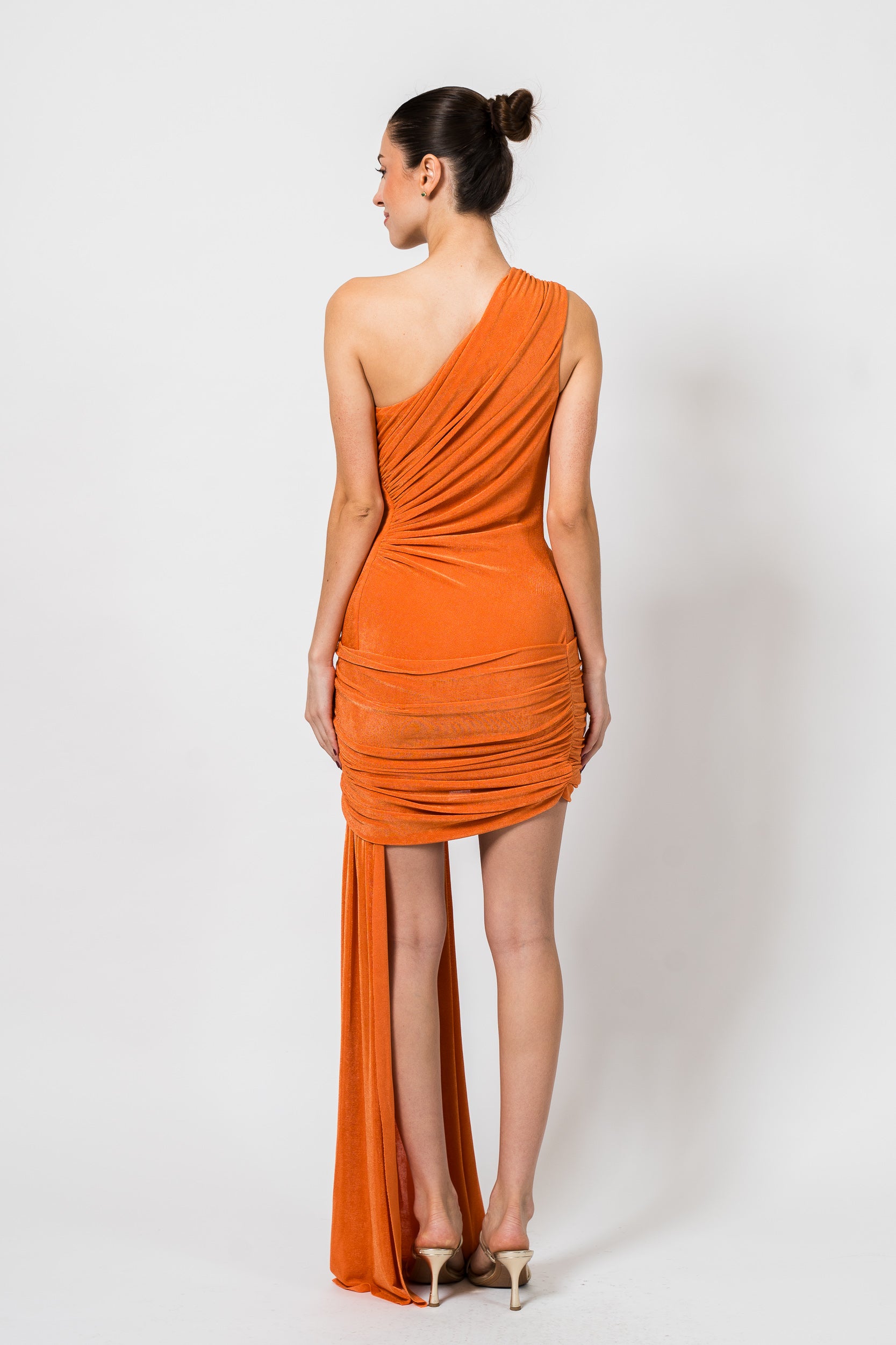 Radiant Jersey One Shoulder Mini Dress in Orange by PatBo.