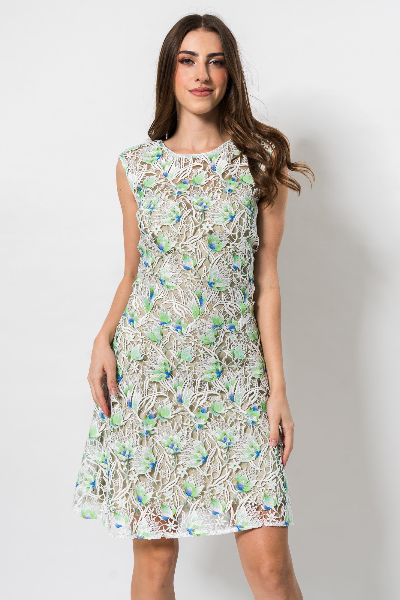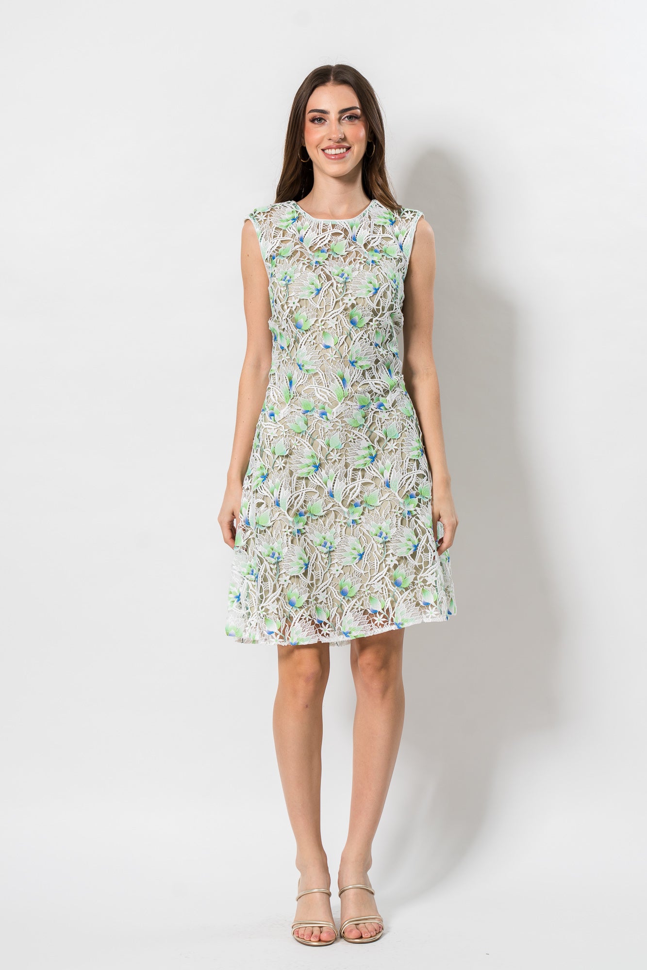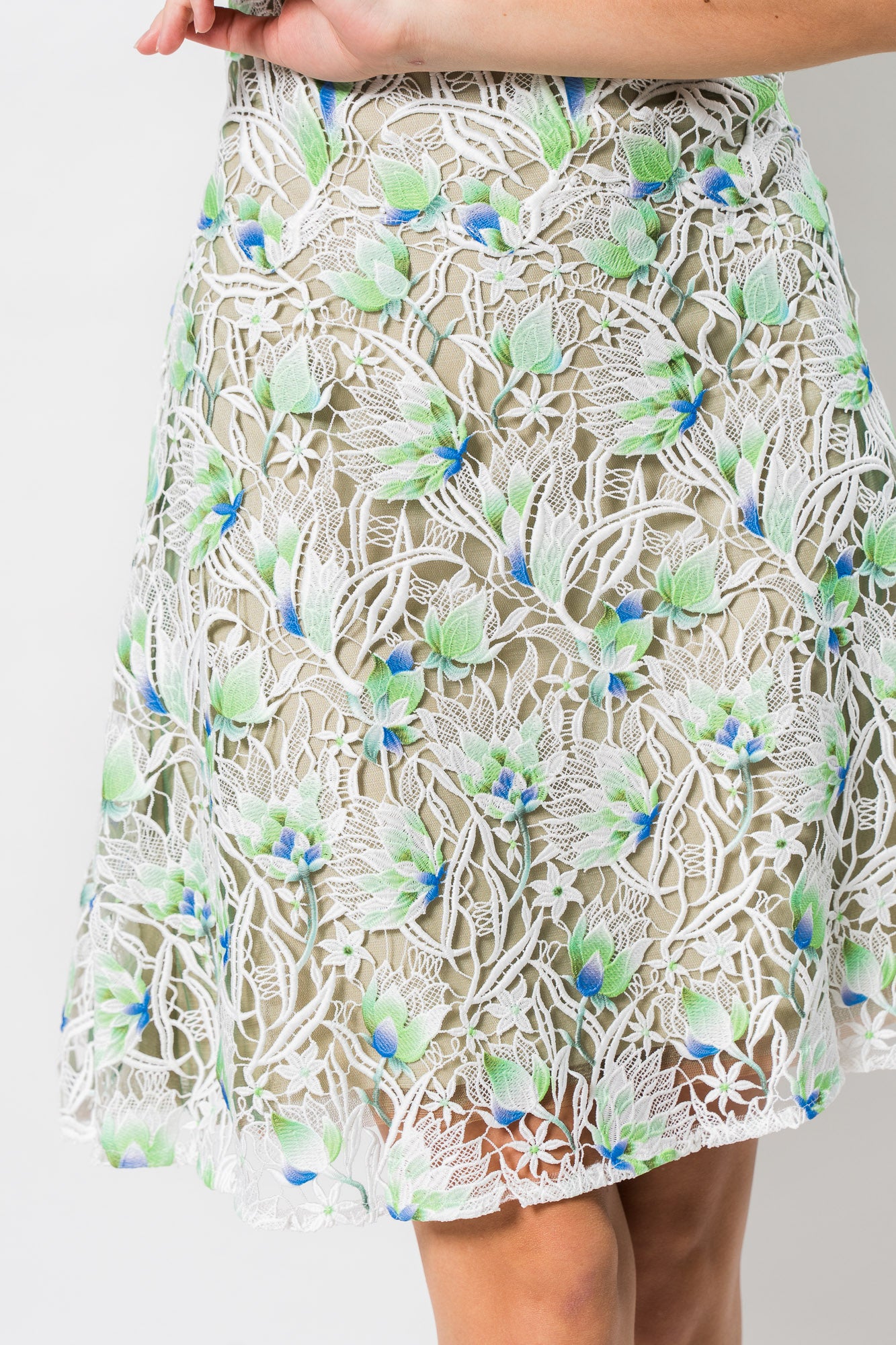 Pyla 3D Floral Embroidered Mini Dress in Waloe by Tadashi Shoji.