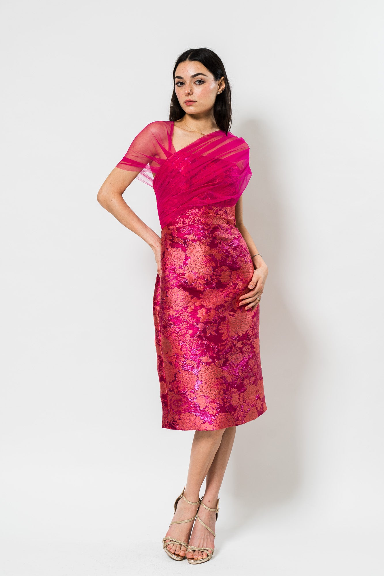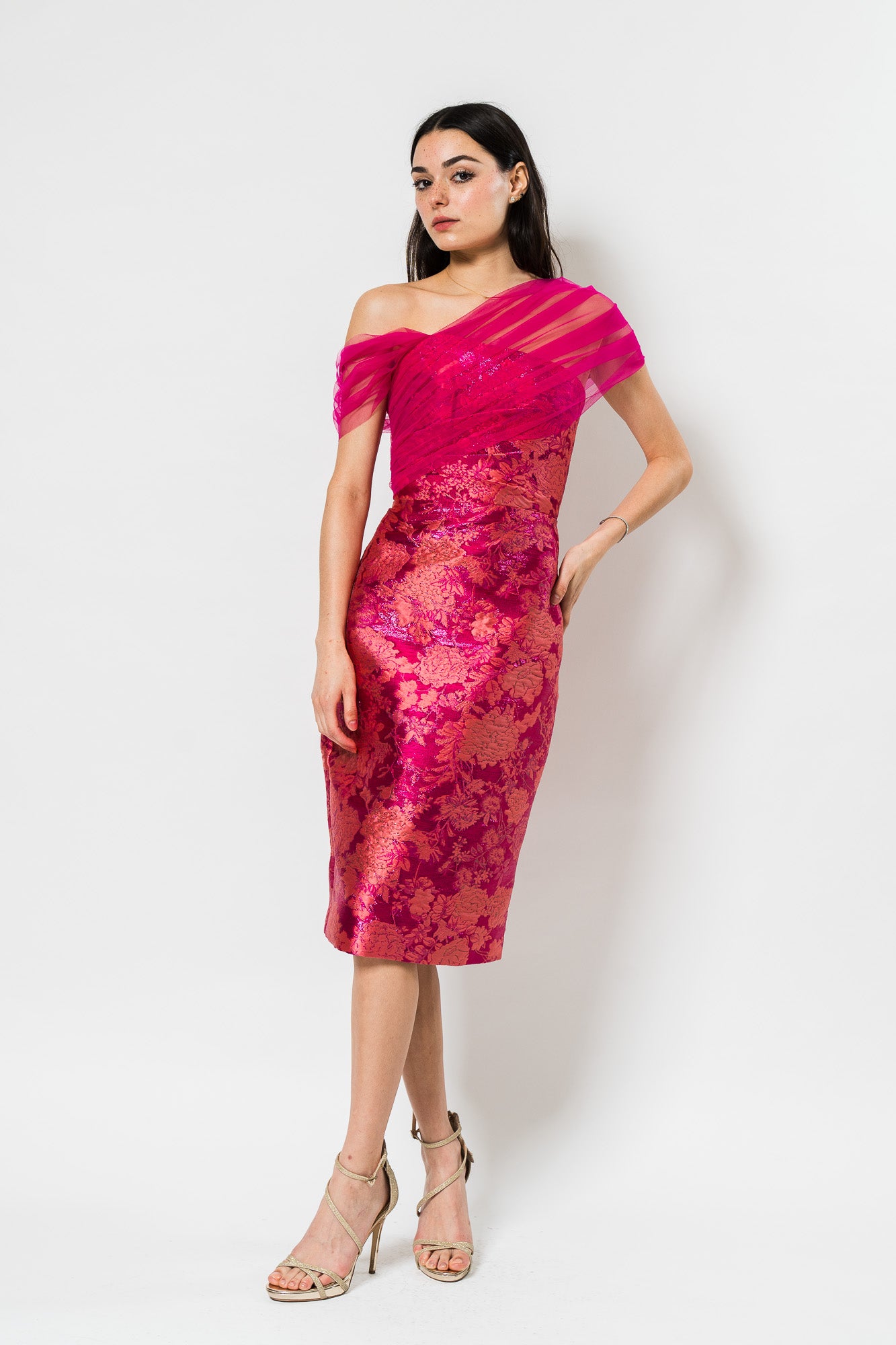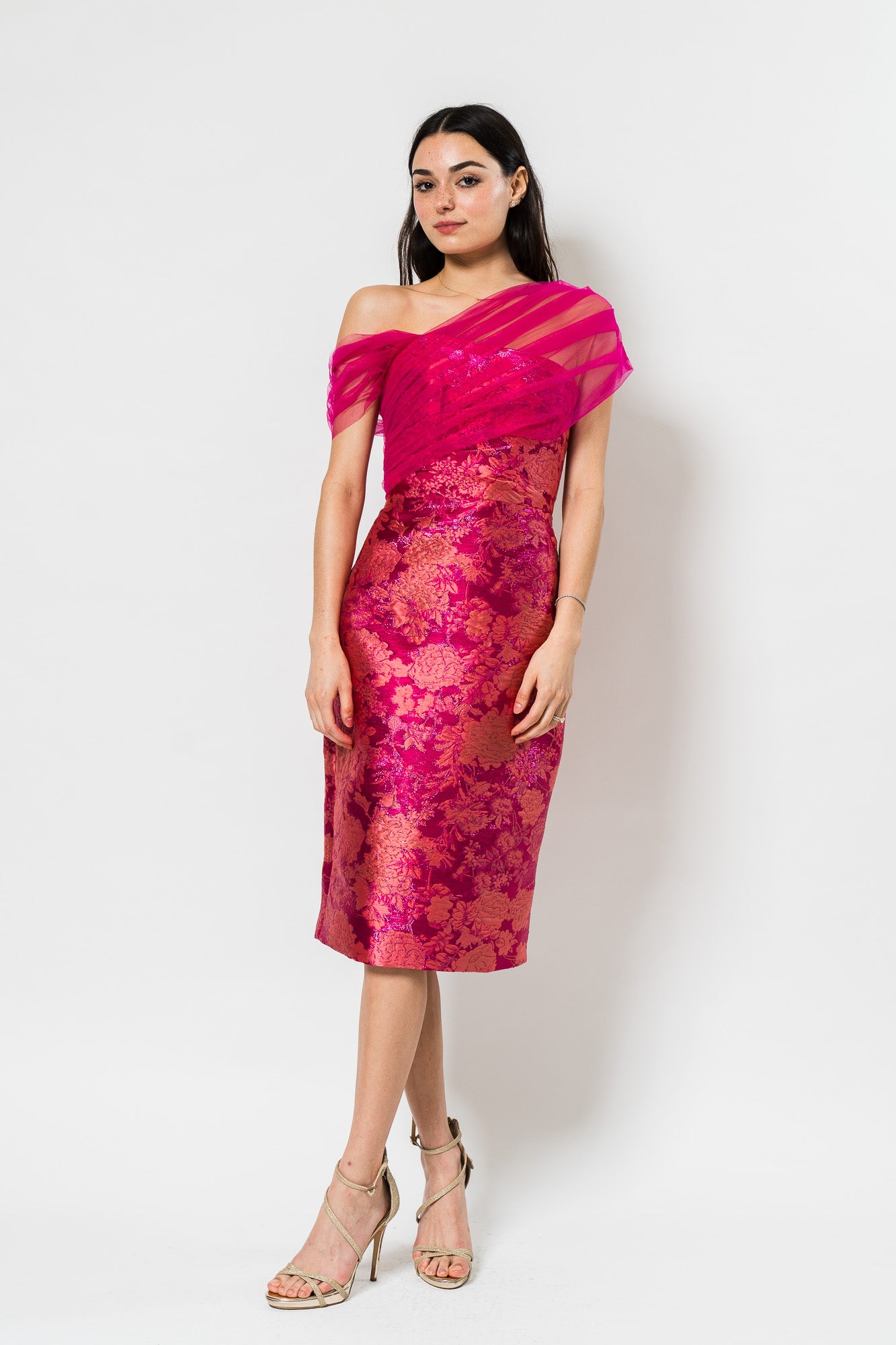 Judy Shawl Midi Dress in Zinnia by Theia.