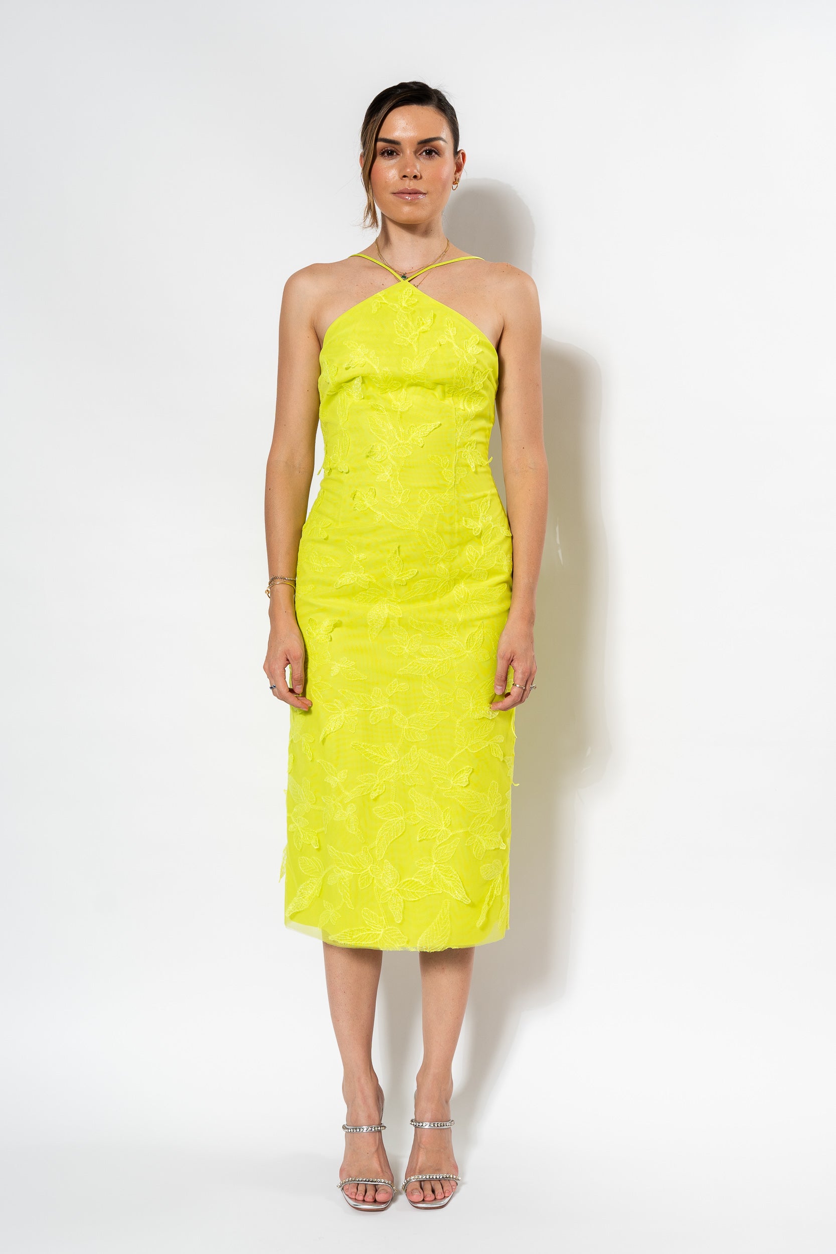 Kayla Tulle Midi Dress in Citron by ML Monique Lhuillier.