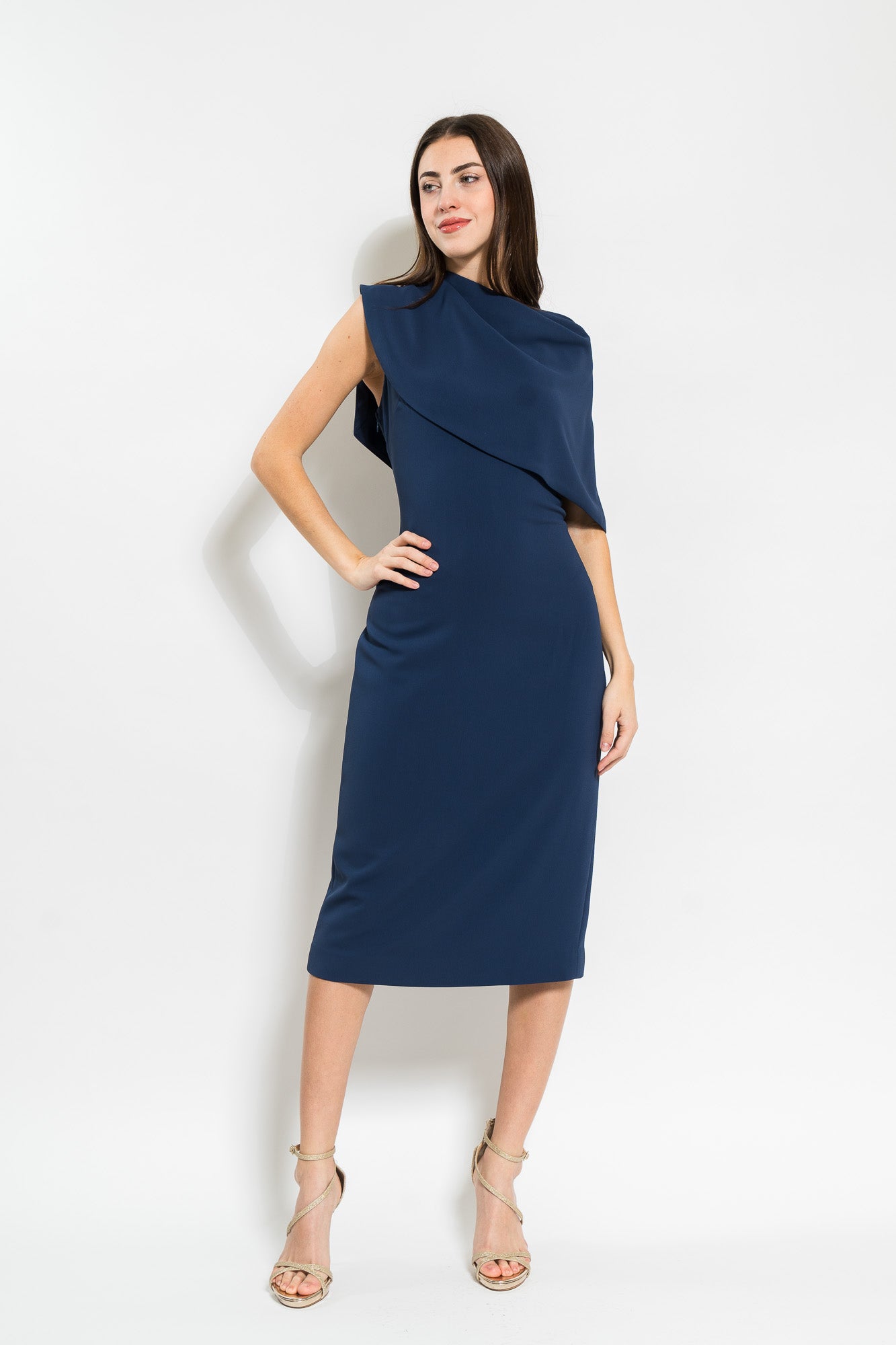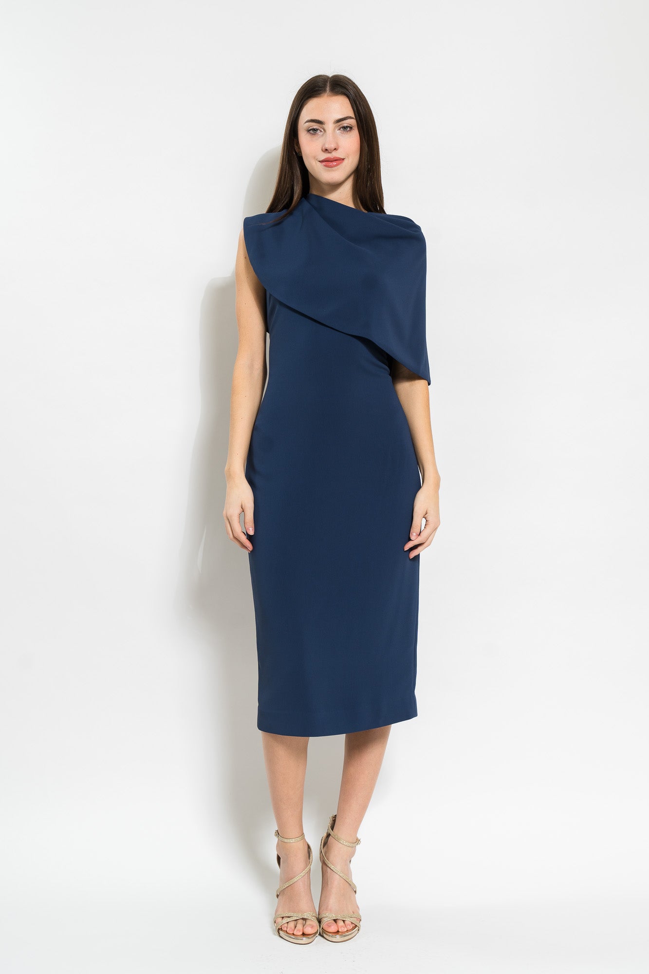 Draped Shoulder Cape un Navy by Badgley Mischka.