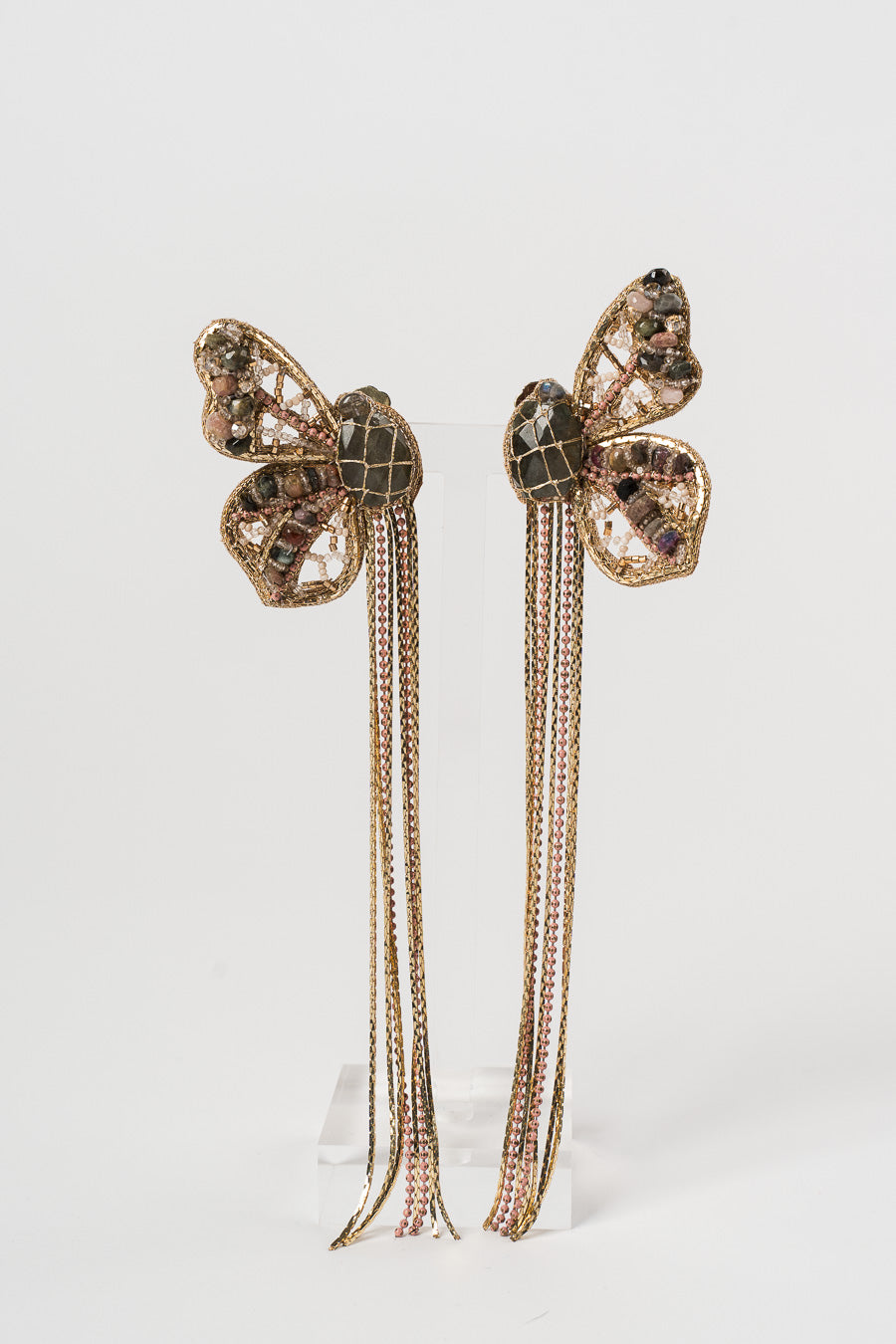 Butterfly Earrings in Pink/Gold by Deepa Gurnani.