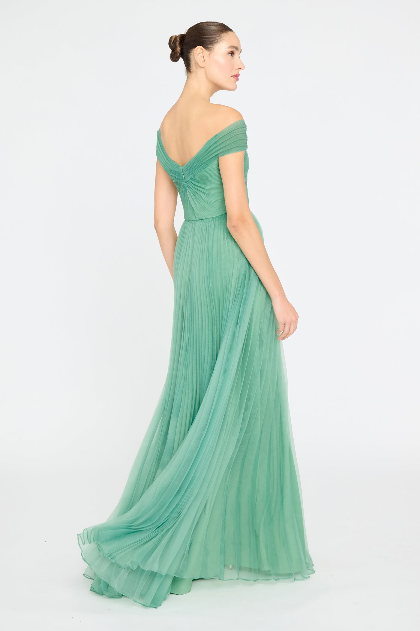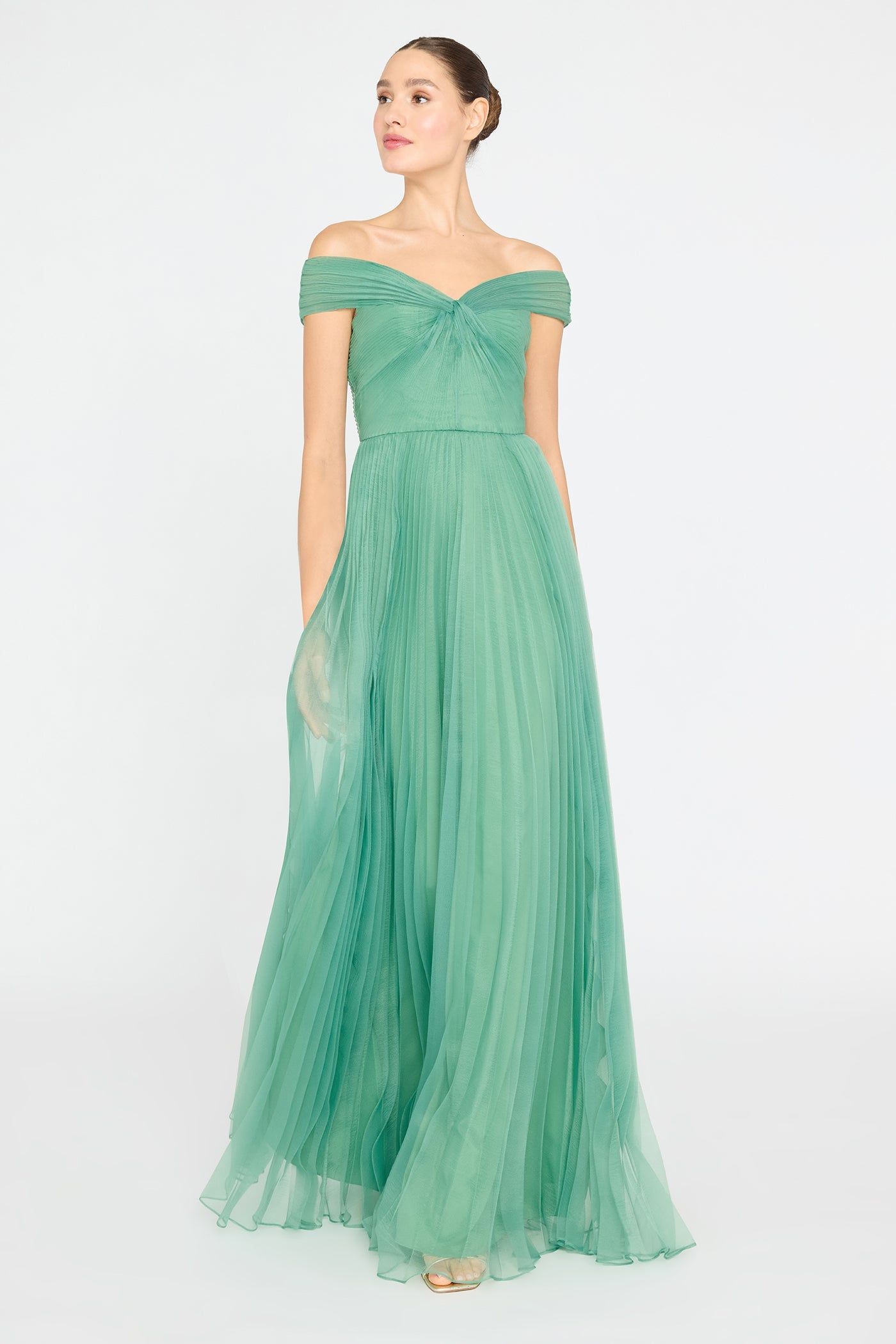 Lisbeth Pleated Gown in Lilypad Green by Theia.