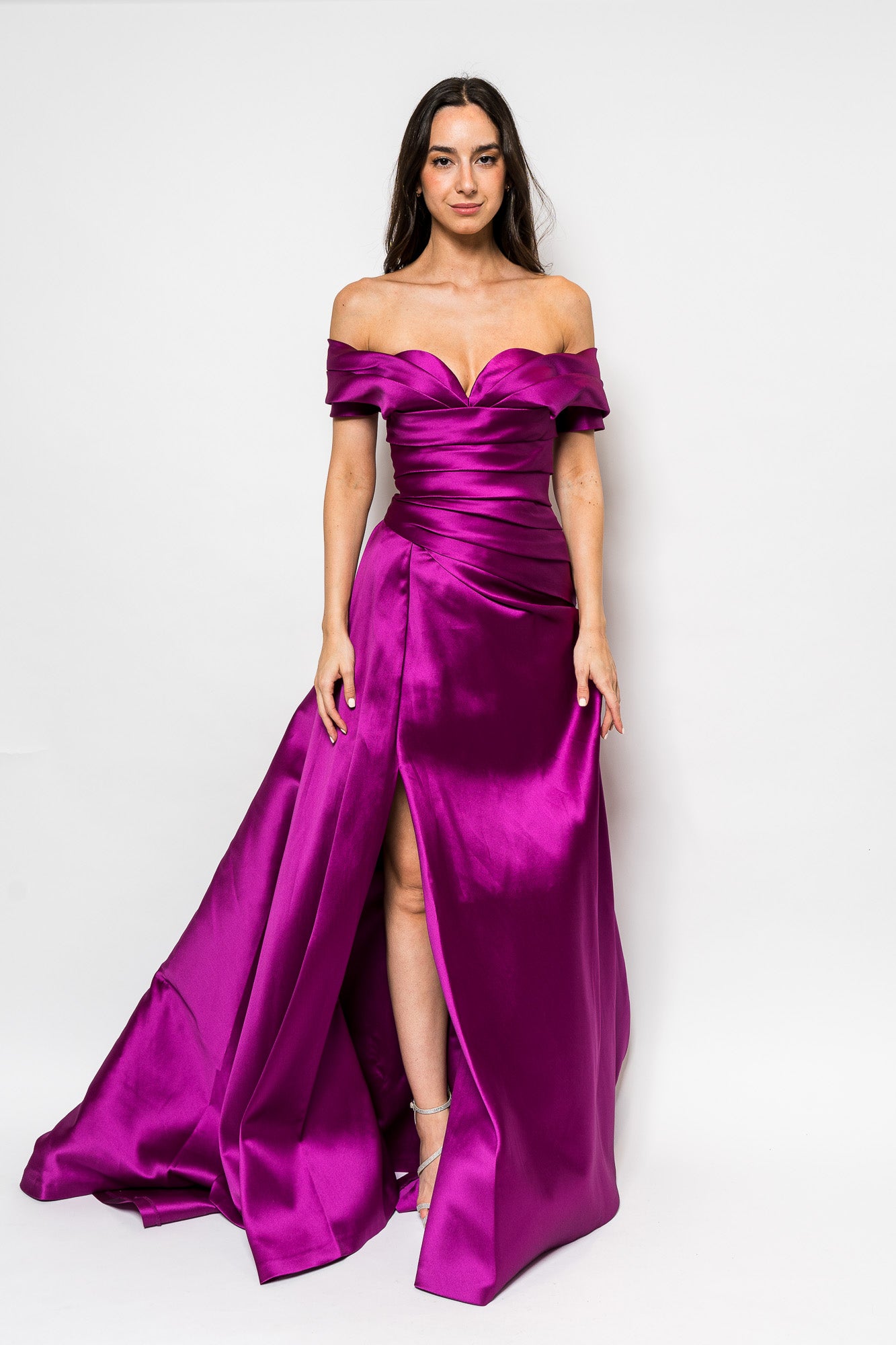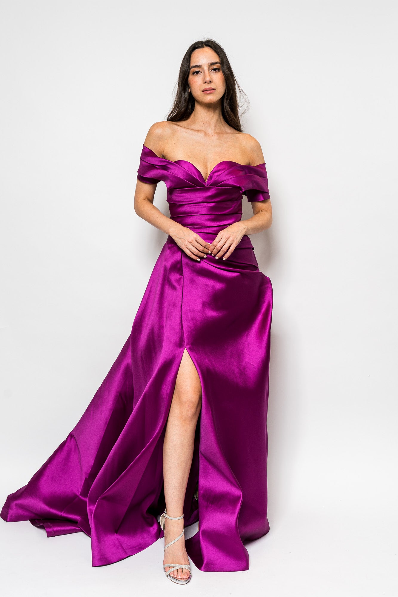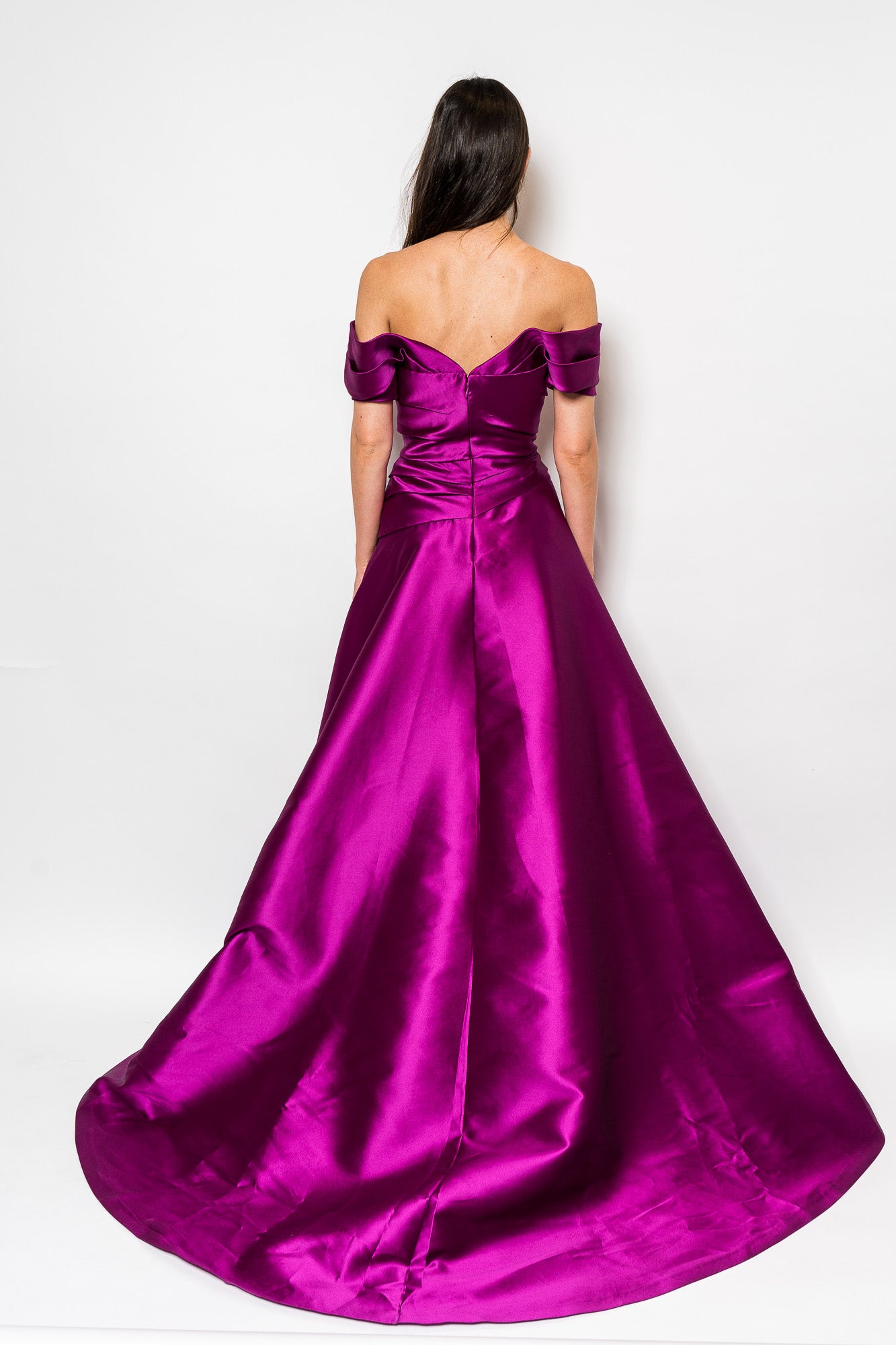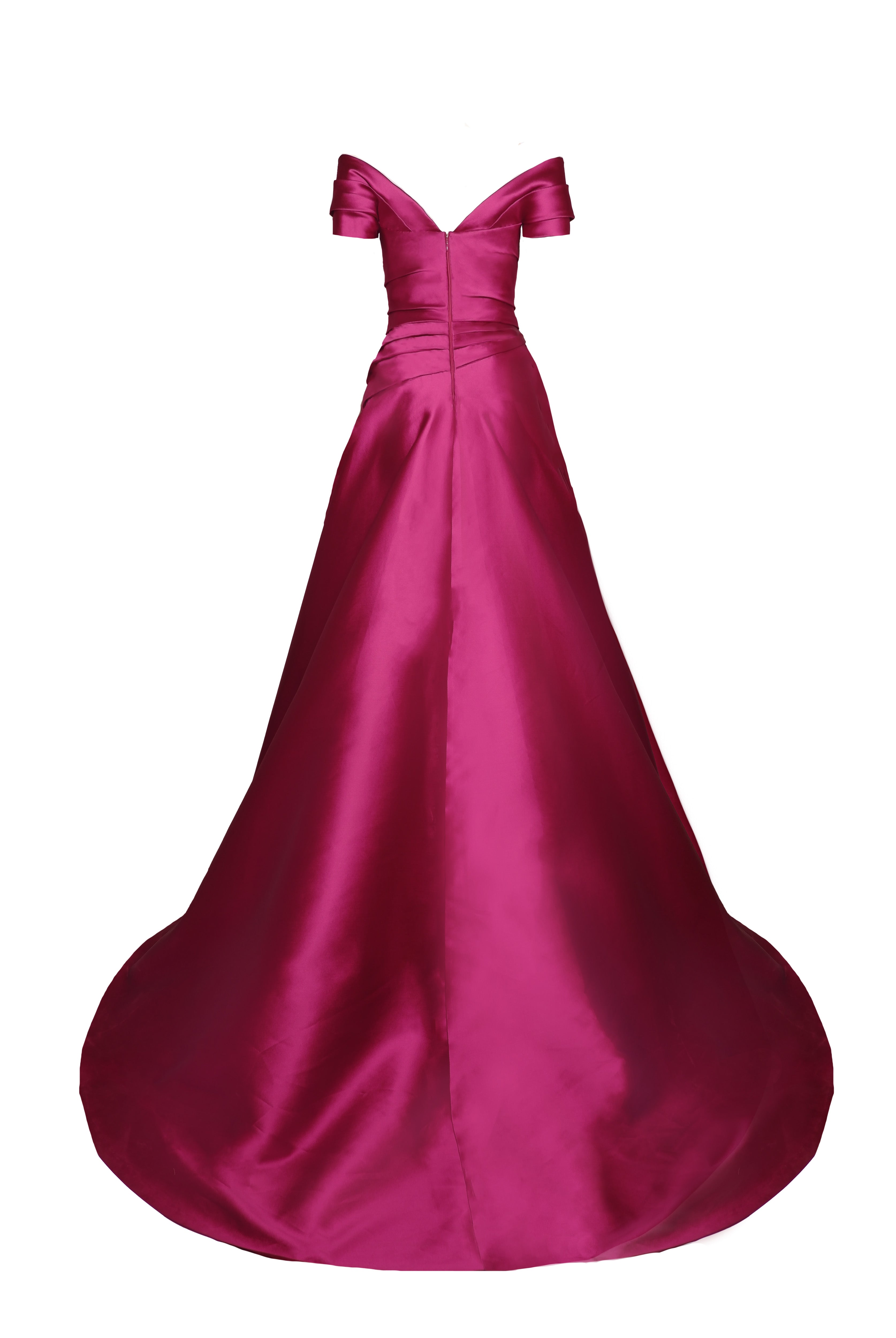 Strapless Pleated Mikado Gown in Magenta by Naeem Khan.