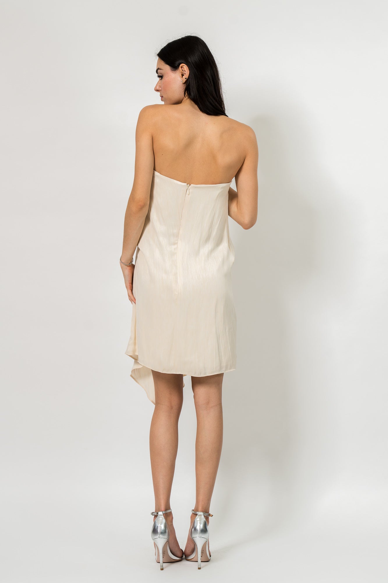 Strapless Drape Dress in Parchment by BCBG Maxazria.
