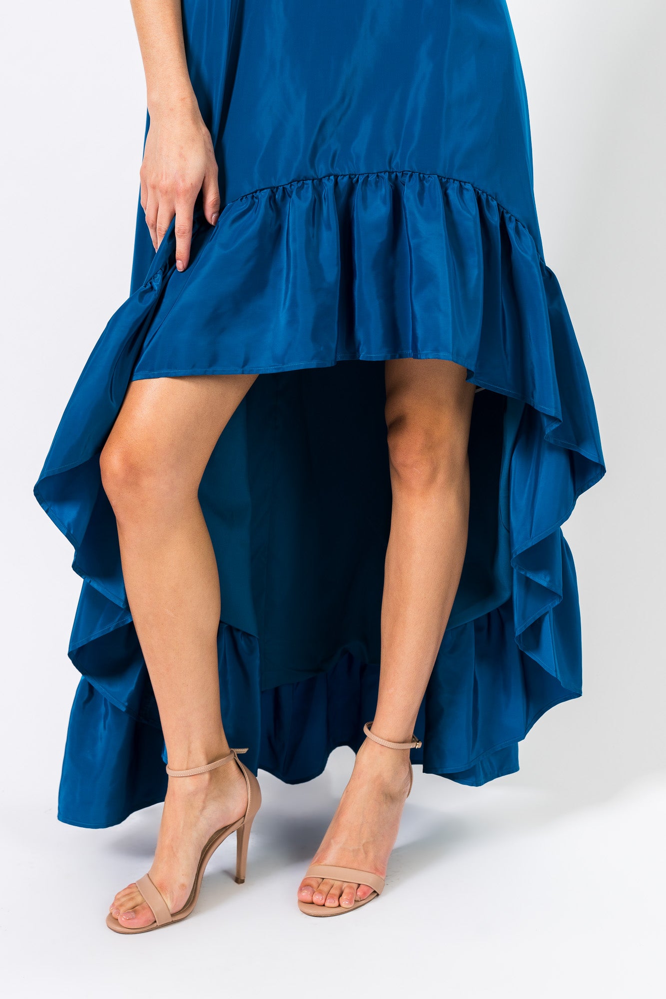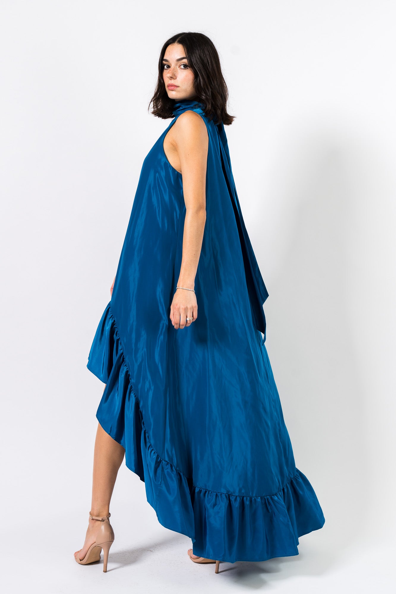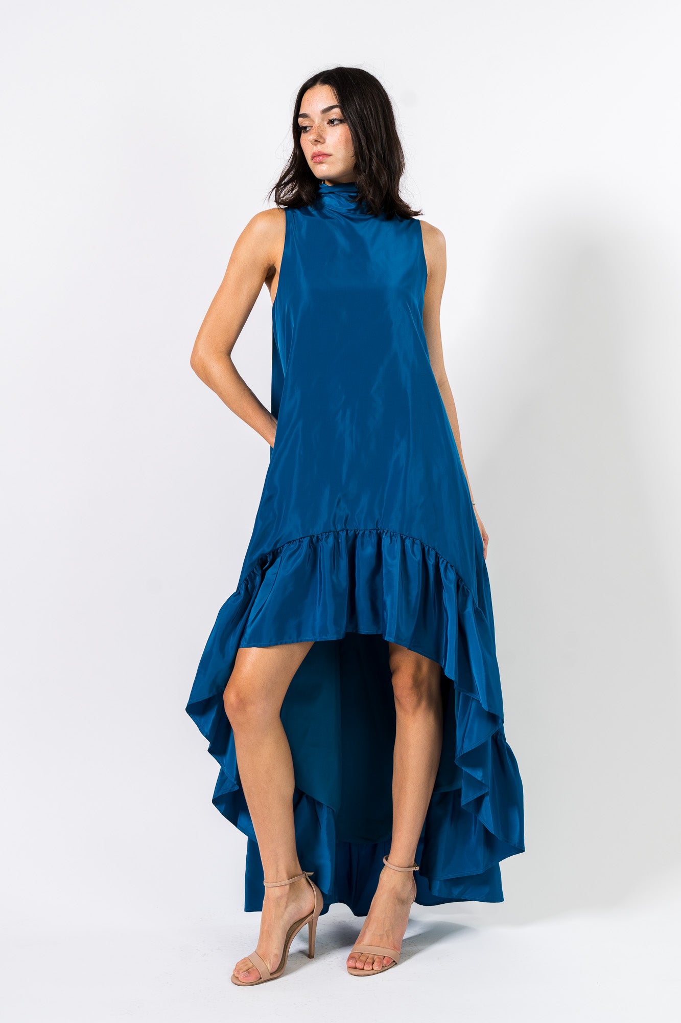 High-Low Maxi Gown in Peacock Blue by One33 Social.