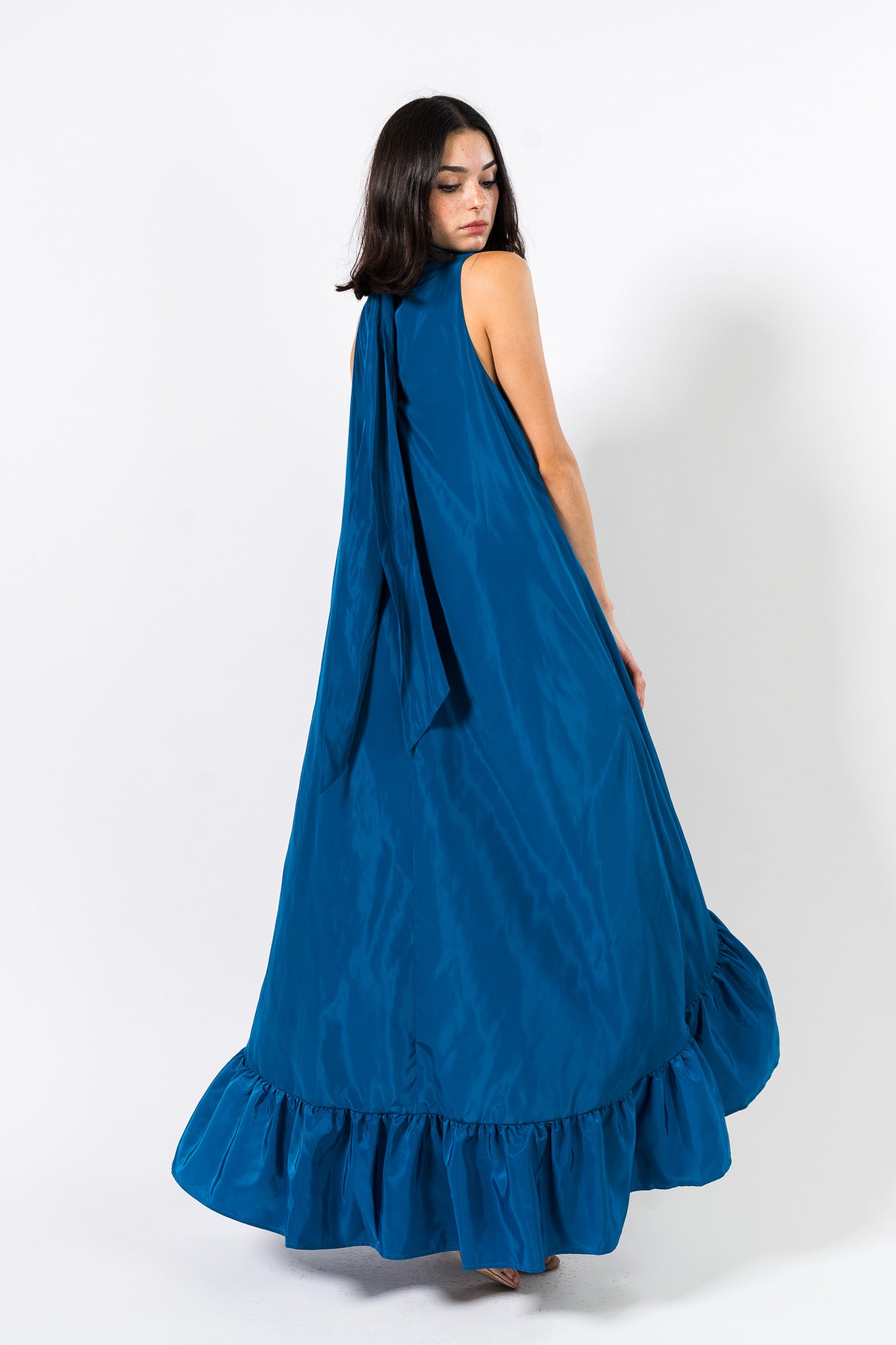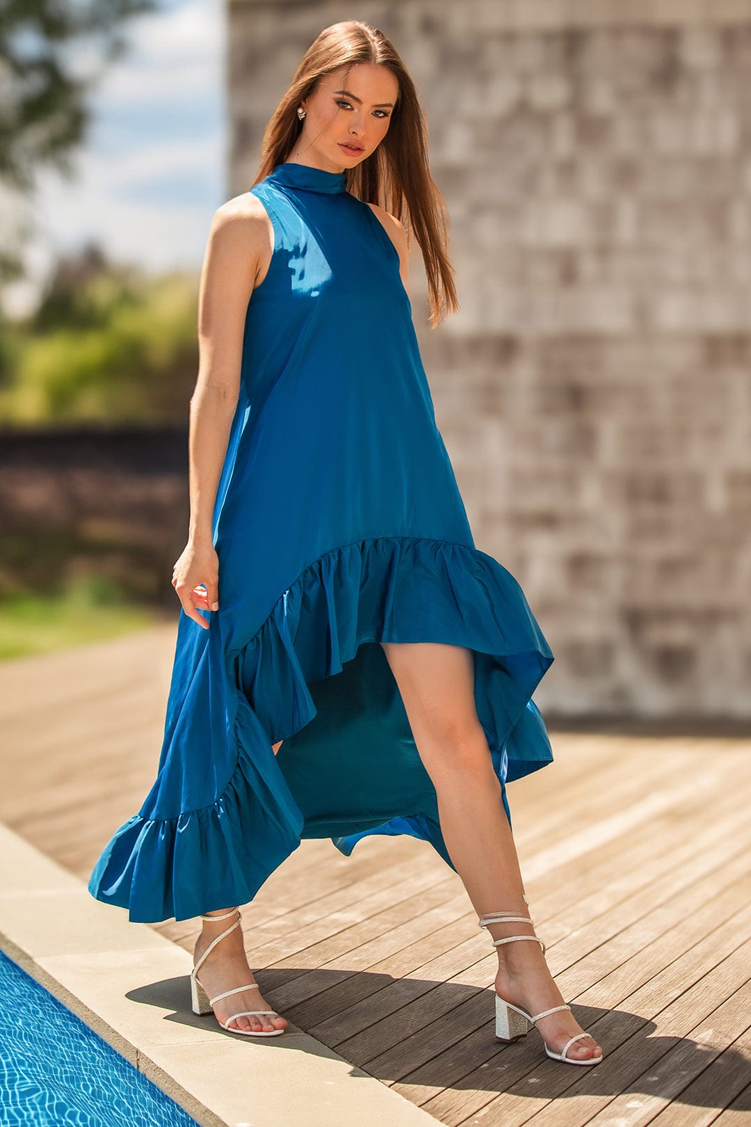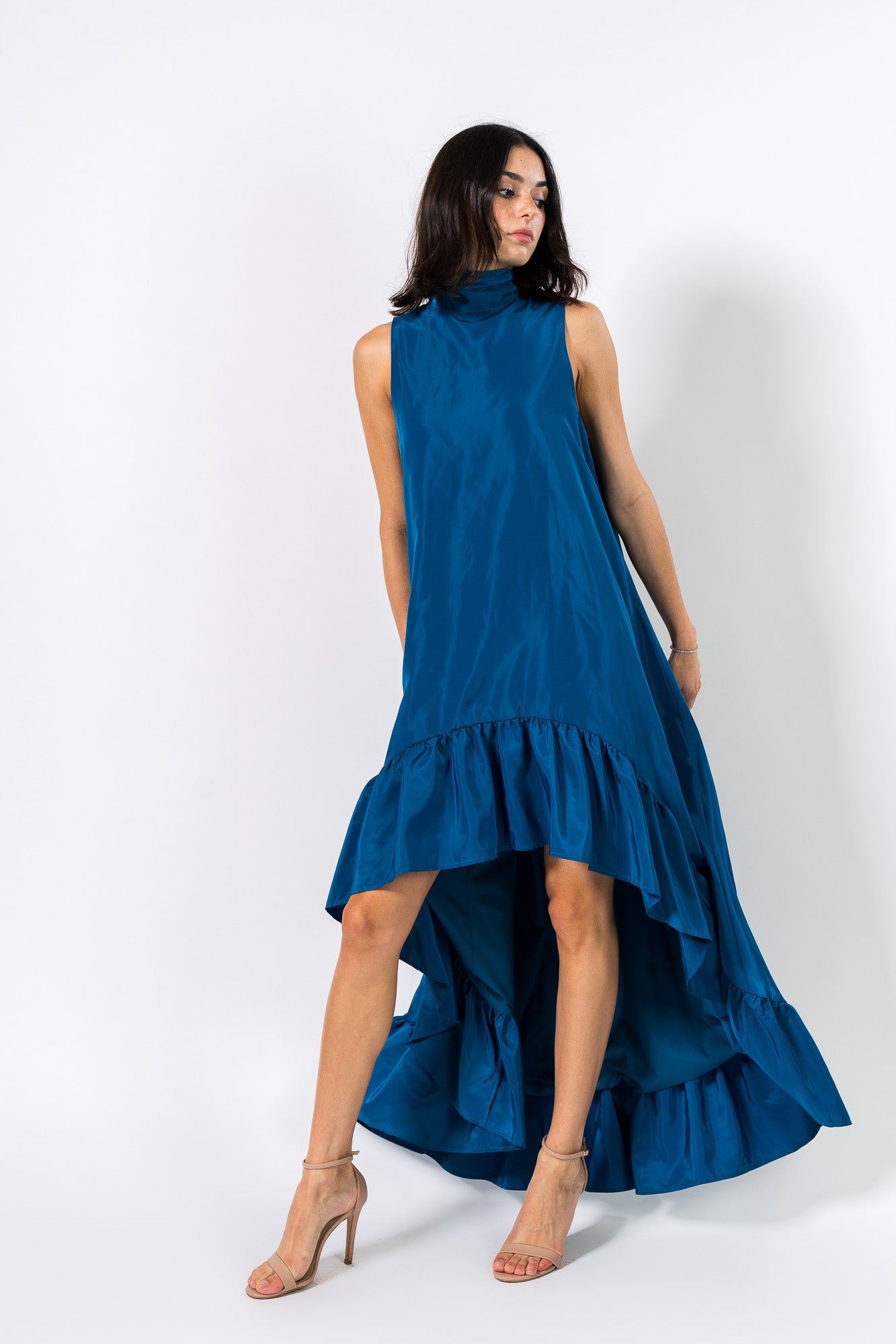 High-Low Maxi Gown in Peacock Blue by One33 Social.