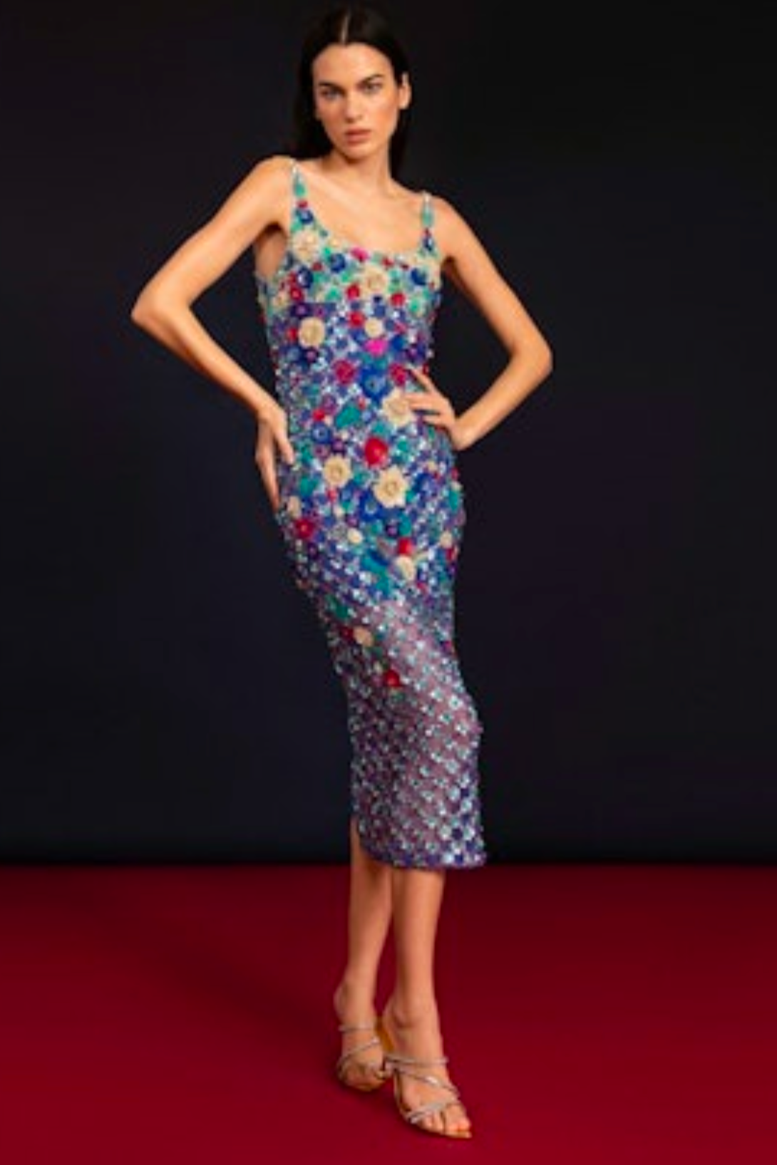 Aurora Dazzling Blue Midi Dress in Dazzling Blue and Periwinkle Blue by La Fuori.