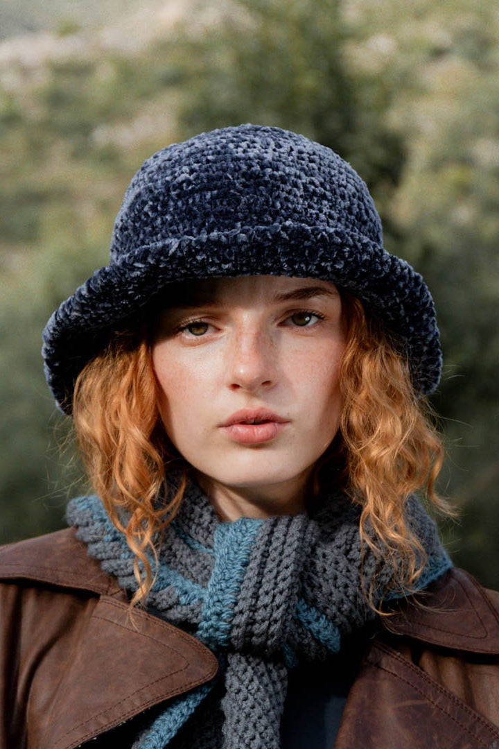 Luna Velvet Bucket Hat in Sapphire by Binge.