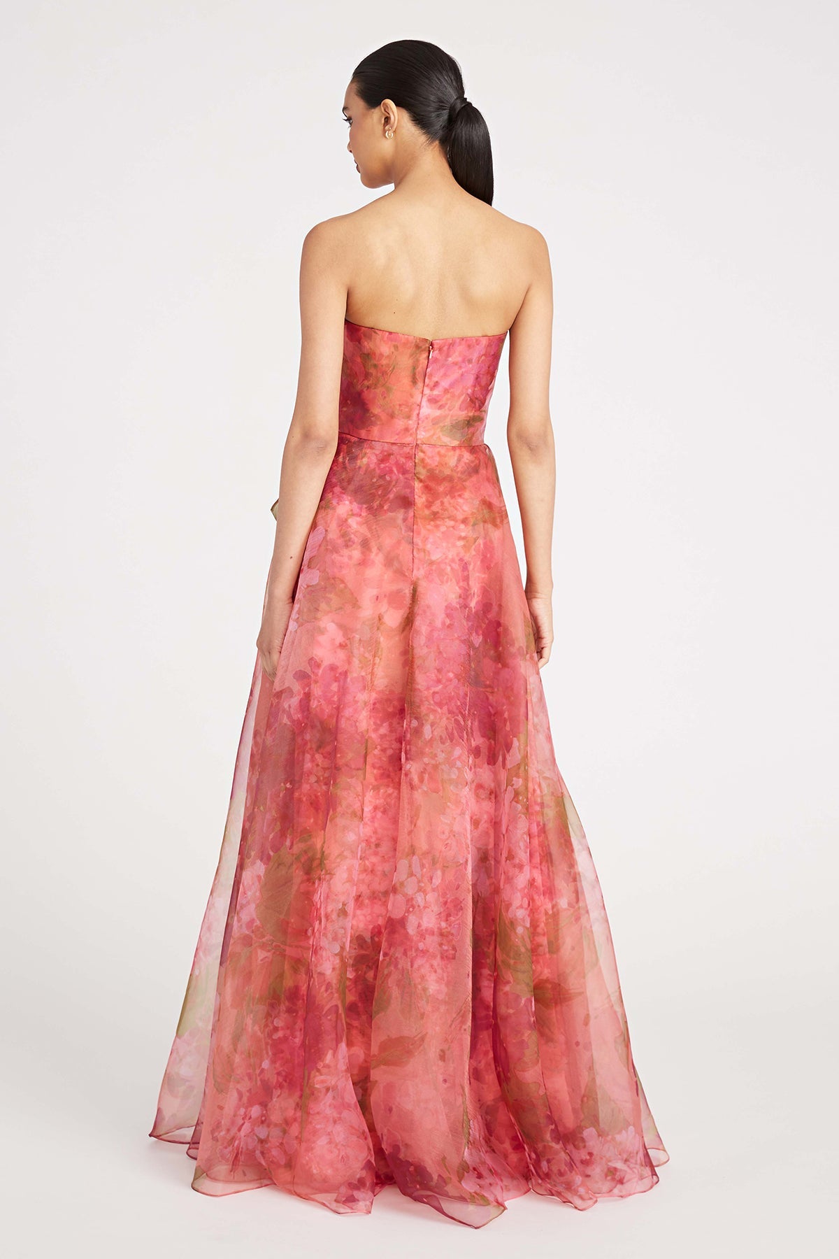 Fahreta Strapless Gown in Printed Wisteria by Theia.